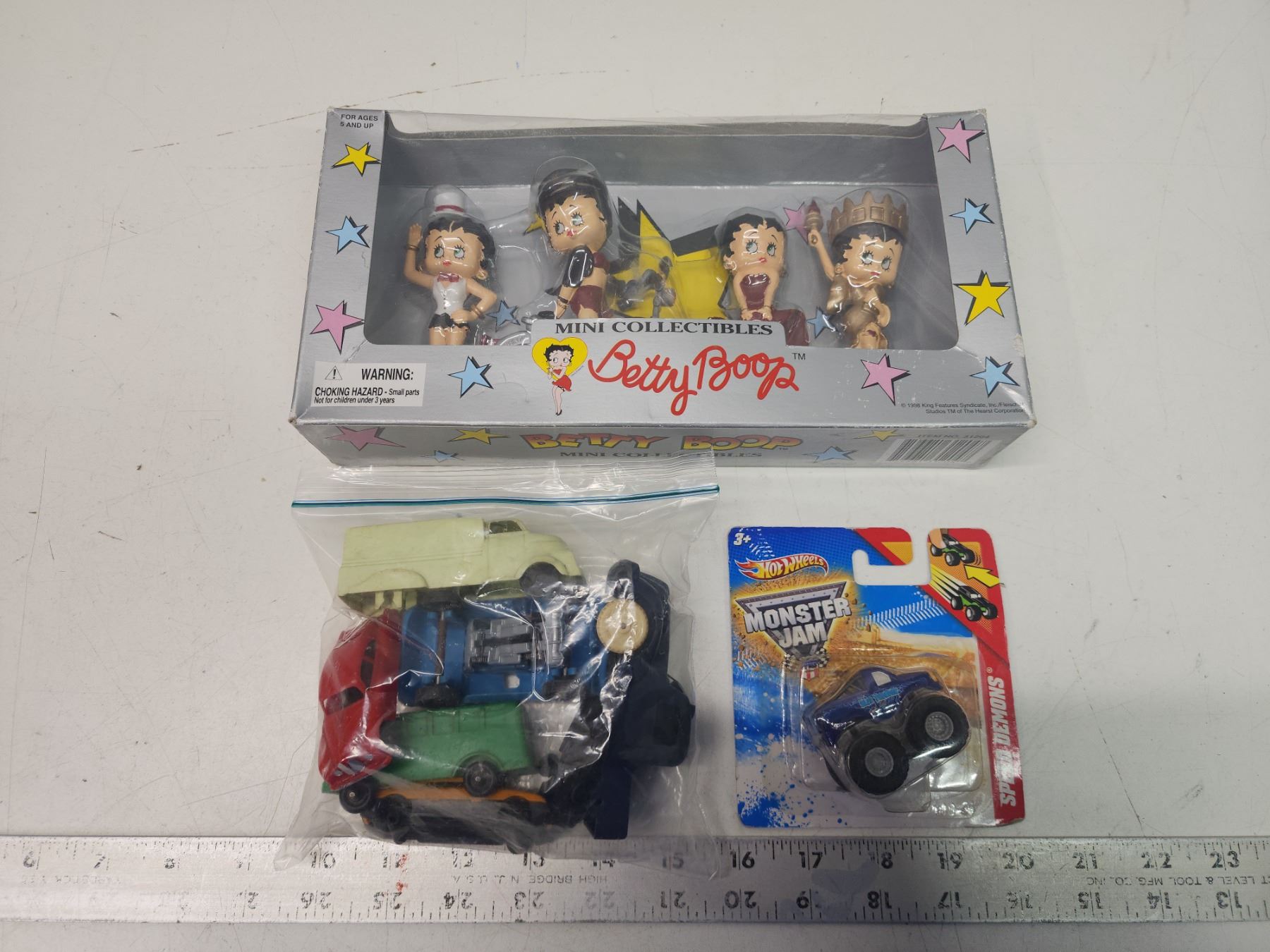 Toy lot - Betty Boop figurines, Mini monster truck & cars, etc.