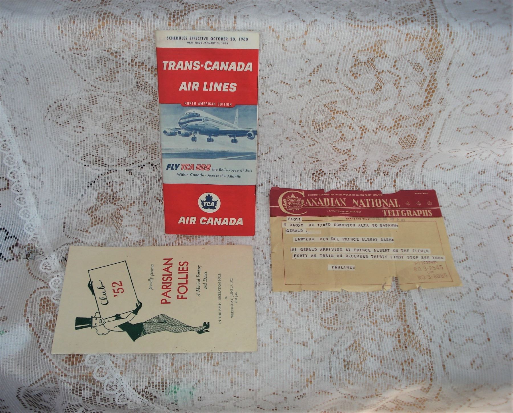 Trans Canada Airlines Schedule (rare) CN Telegraph Parisian Follies