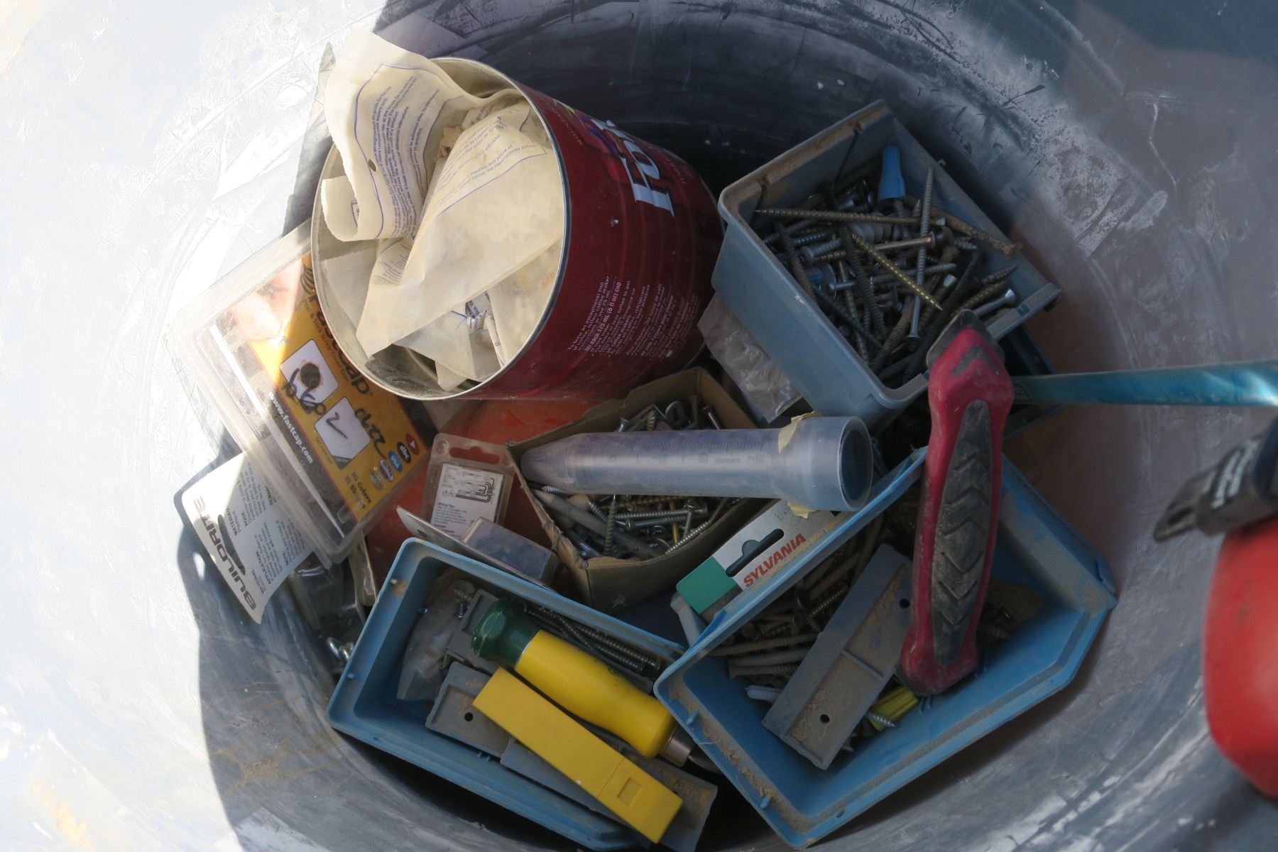 Trash Bin w/ Misc. Tools & Hardware for Carpentry/Contractors