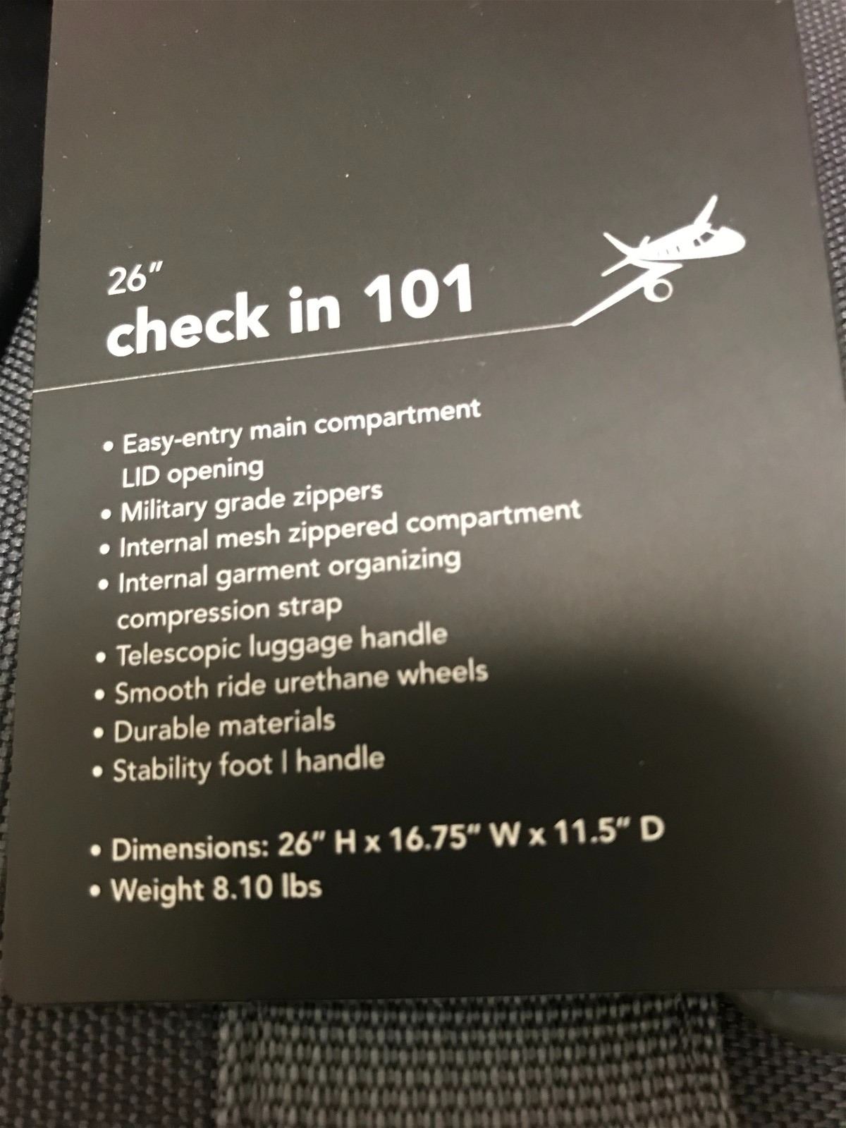 Military grade zippers,mesh zippered compartment, internal garment organizing,telescopic handle, durable wheels