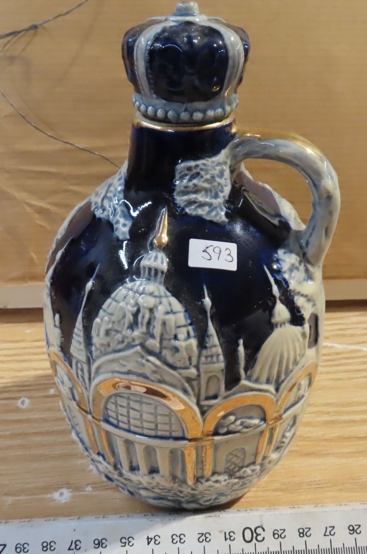 Treble tones musical decanter vintage blue white gold rare find- working