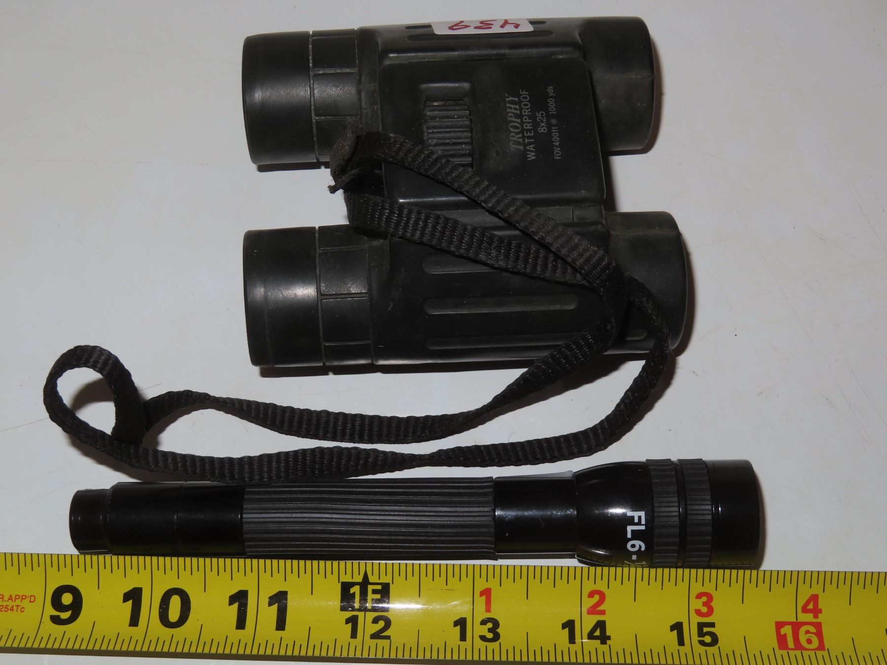 Trophy waterproof binoculars 8x25 (FOV 4000ft @1000yards) + Herbrand LED flashlight
