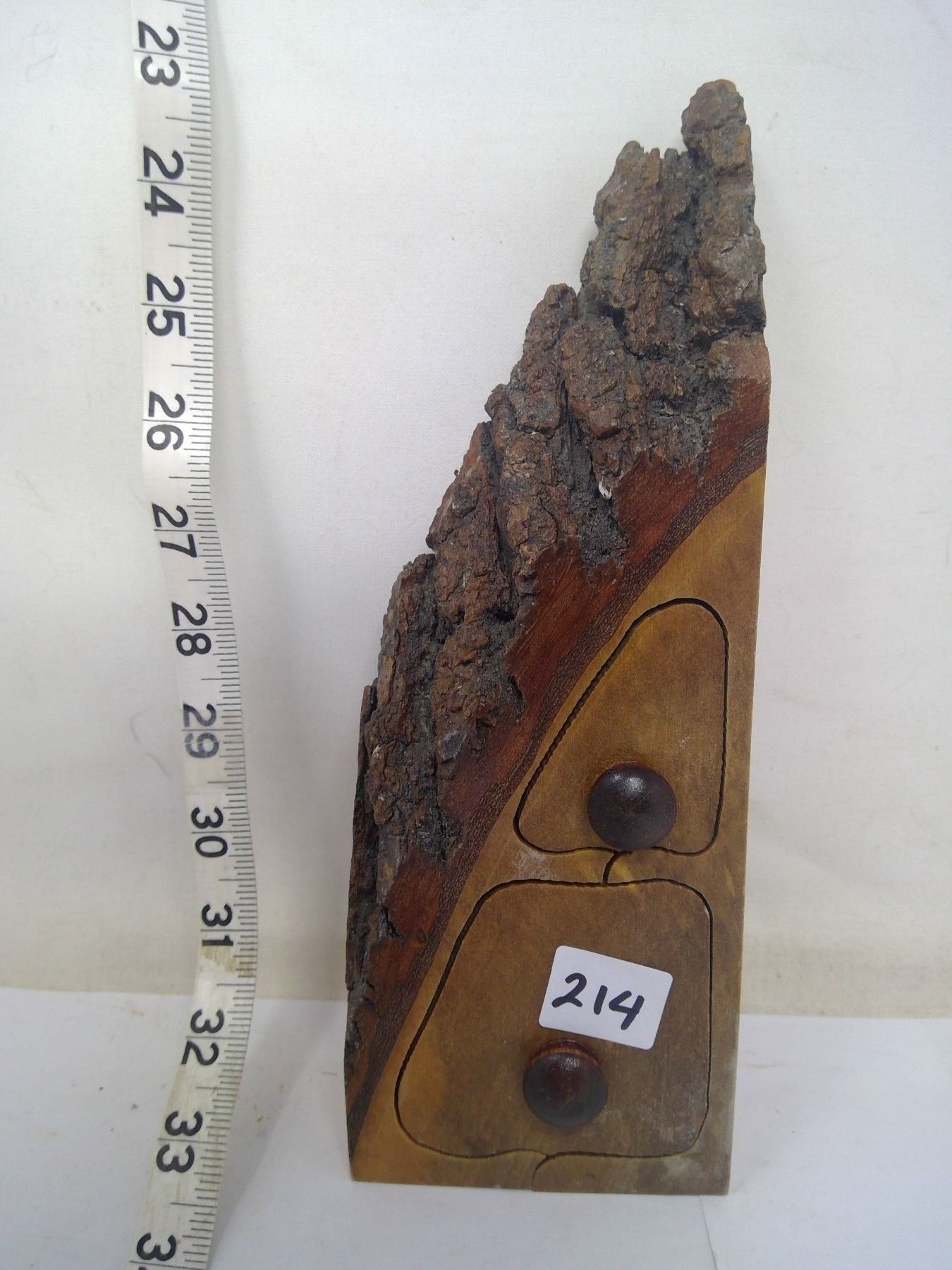 Trunk with bark troll hide-it-box. Two Drawers. Height: 10 ½”. Width 3”. Deep: 2”