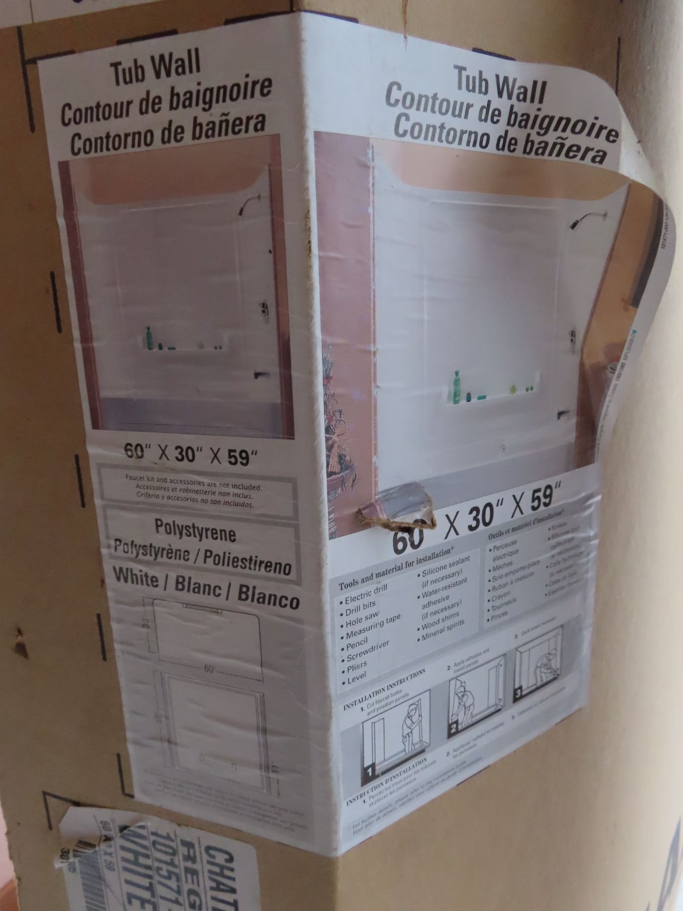 Tube wall surround 60" x 30" x 59" - Polystyrene (white)