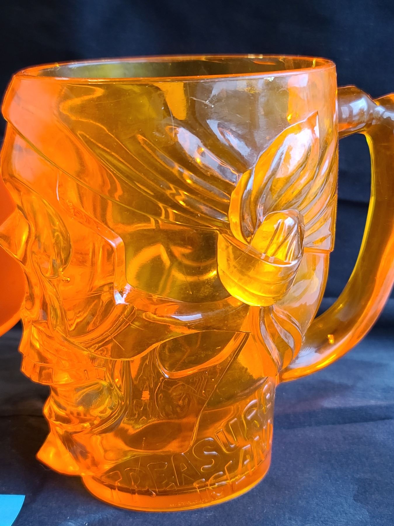 “Tupperware” Candy corn 5L container with handle and lid, Treasure Island plastic orange skull mug