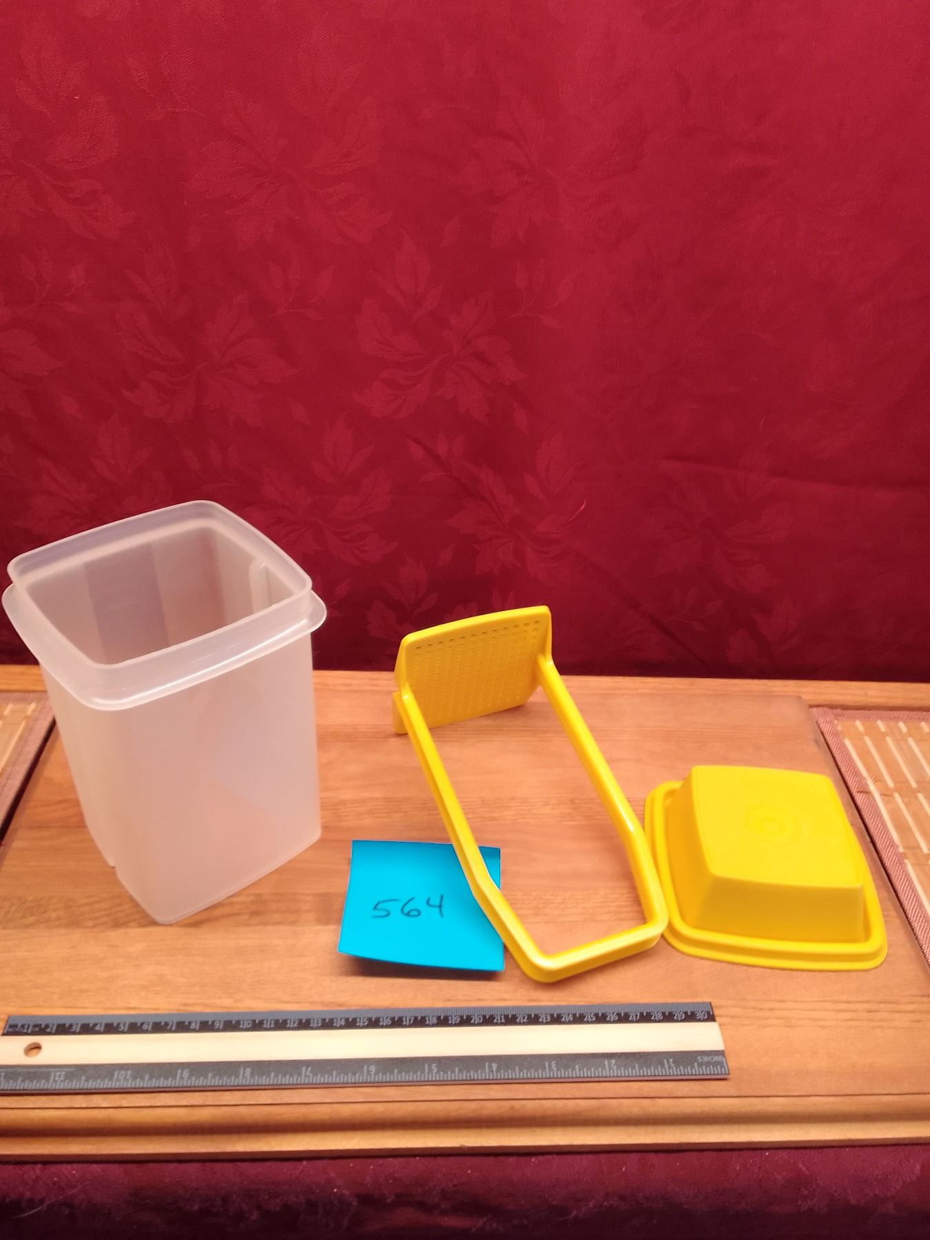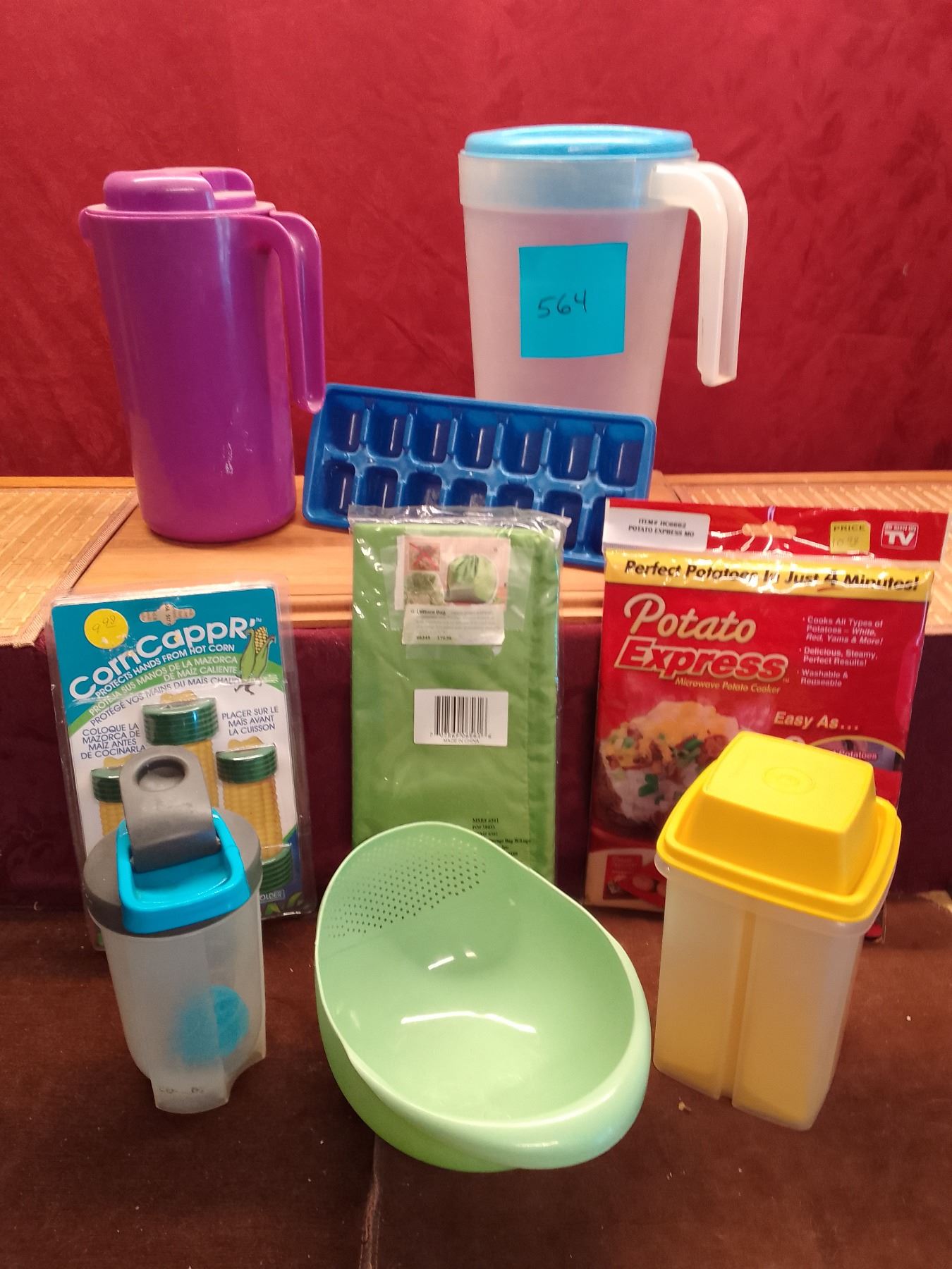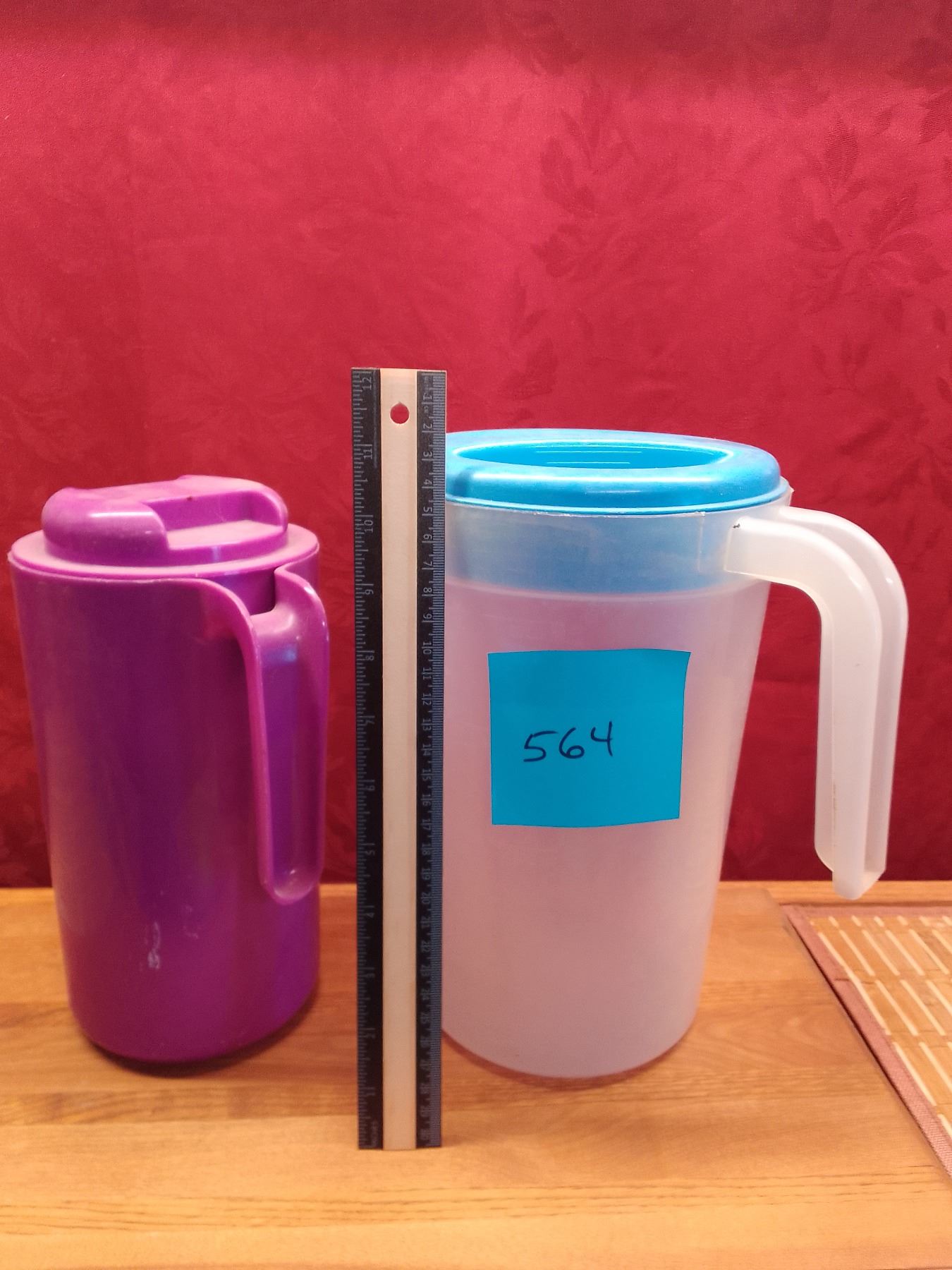 Tupperware, pickle container, juice jug, miscellaneous pitcher and items