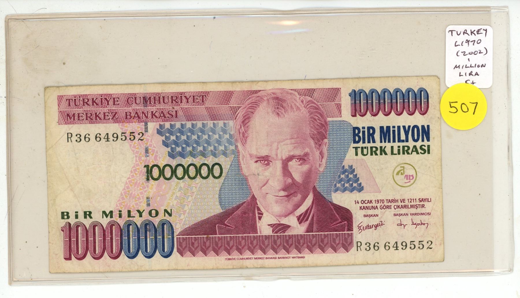 Turkey. L1970 (2002) 1 Million Lira. (Who wants to be a millionaire?). Fine+.