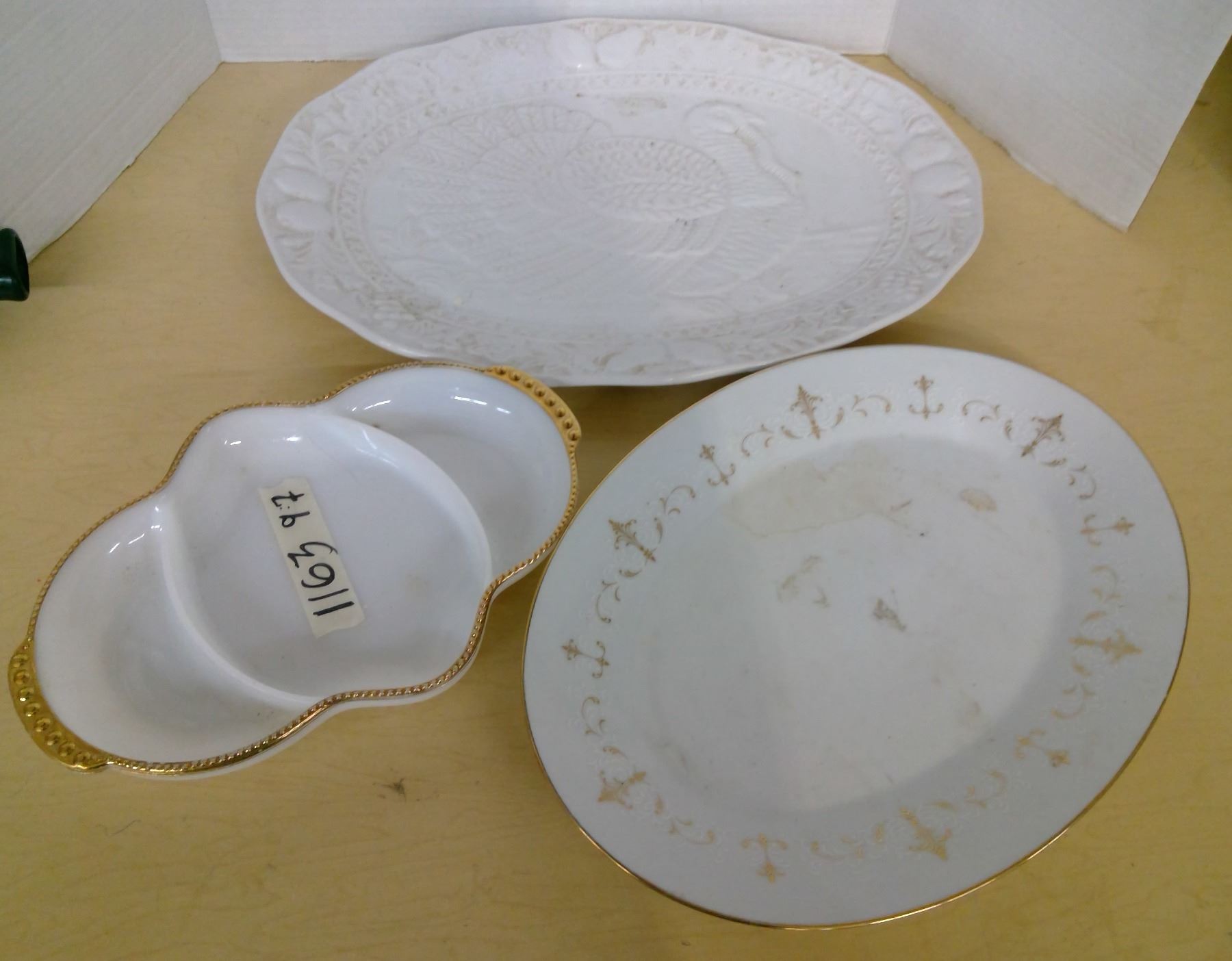 Turkey Oval Platter, Noritake Stoneleigh, Fire king Divided Platter
