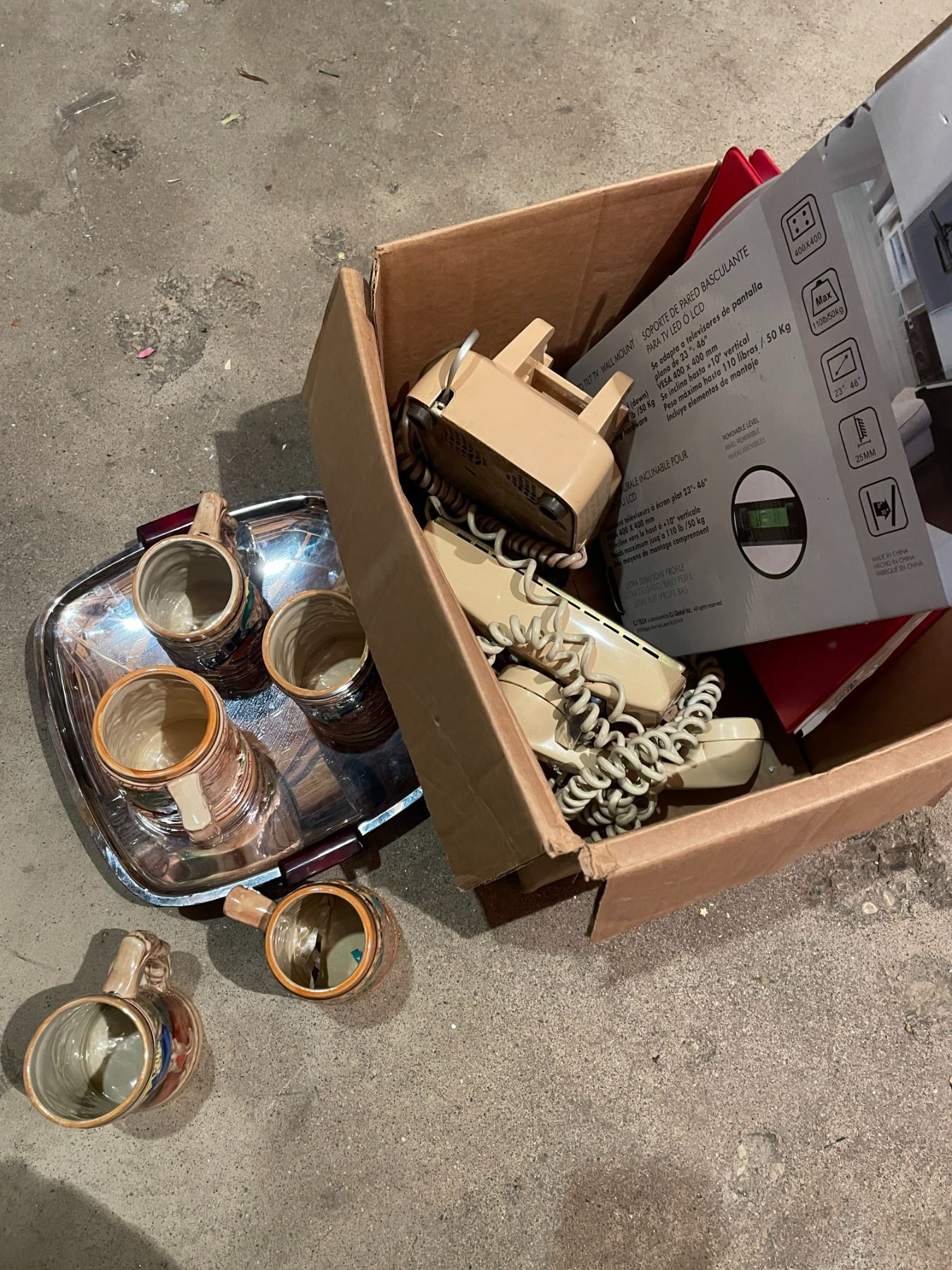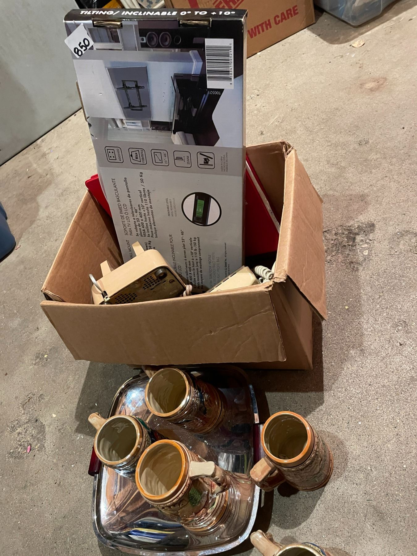 Tv mount, phones steins
