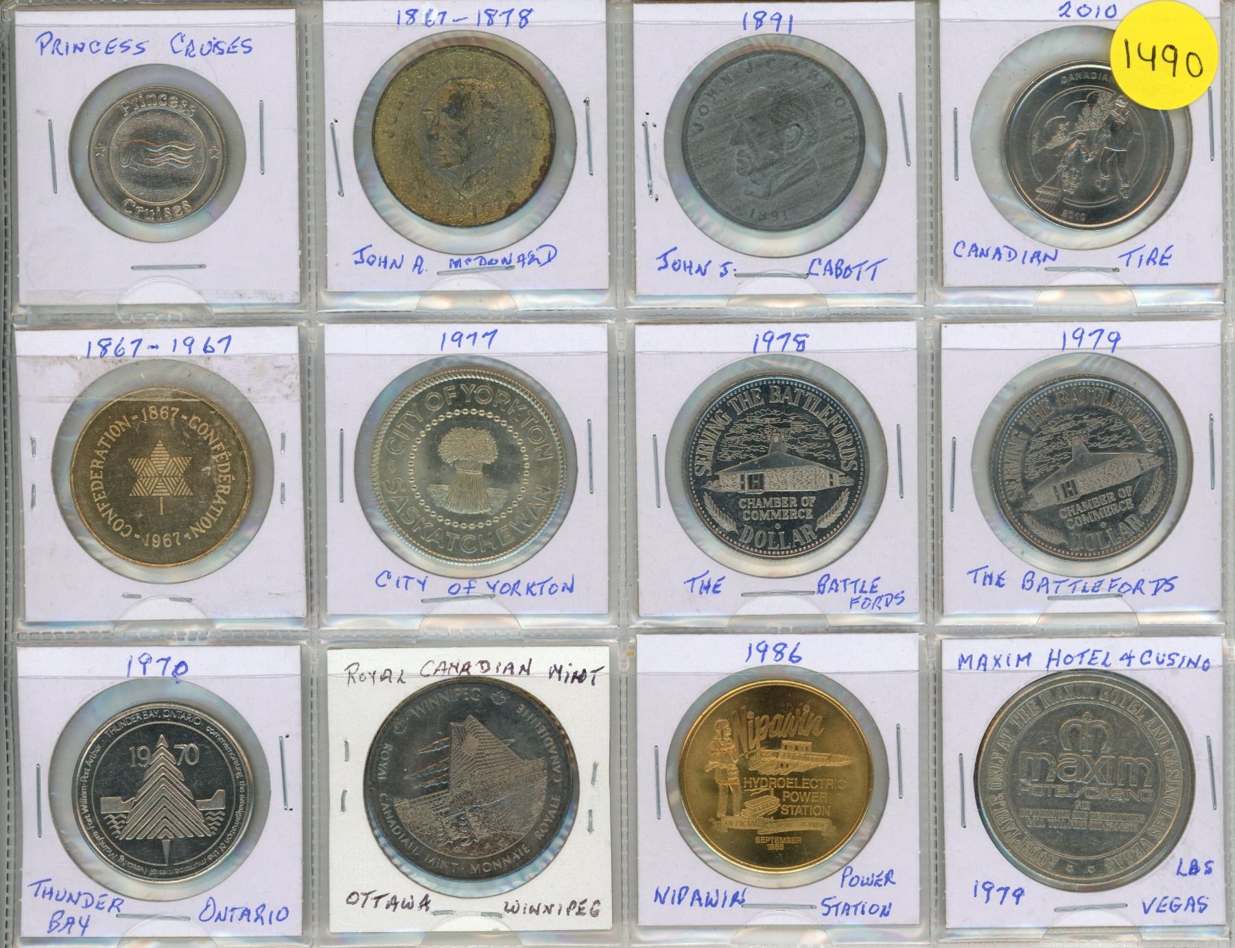 Twelve tokens as per picture