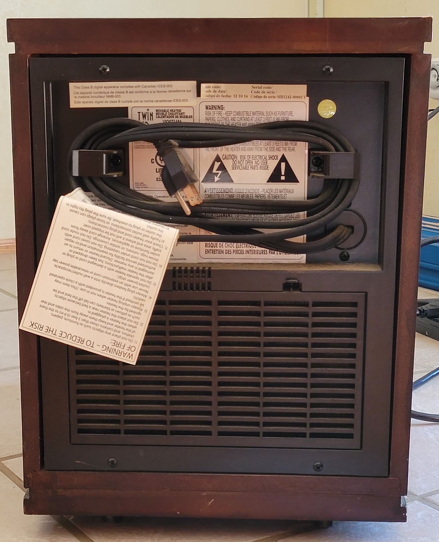 Twinstar Duraflame Movable Heater 10QI071ARA 120V, 1500W, 60Hz