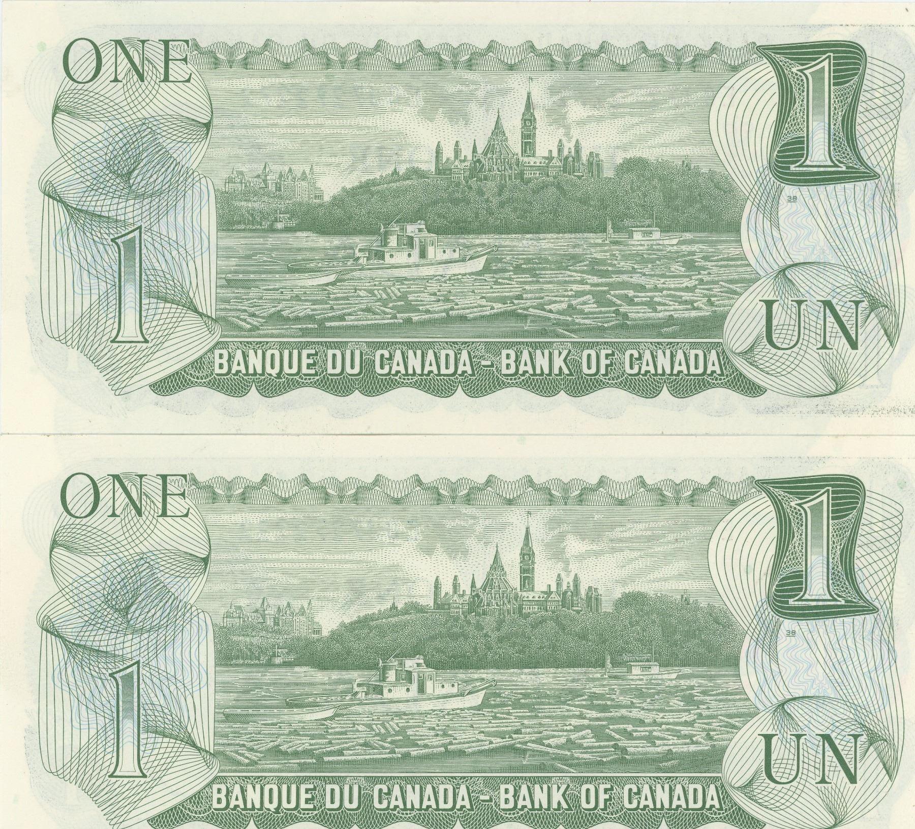 Two 1973 Canadian 1 Dollar Bills