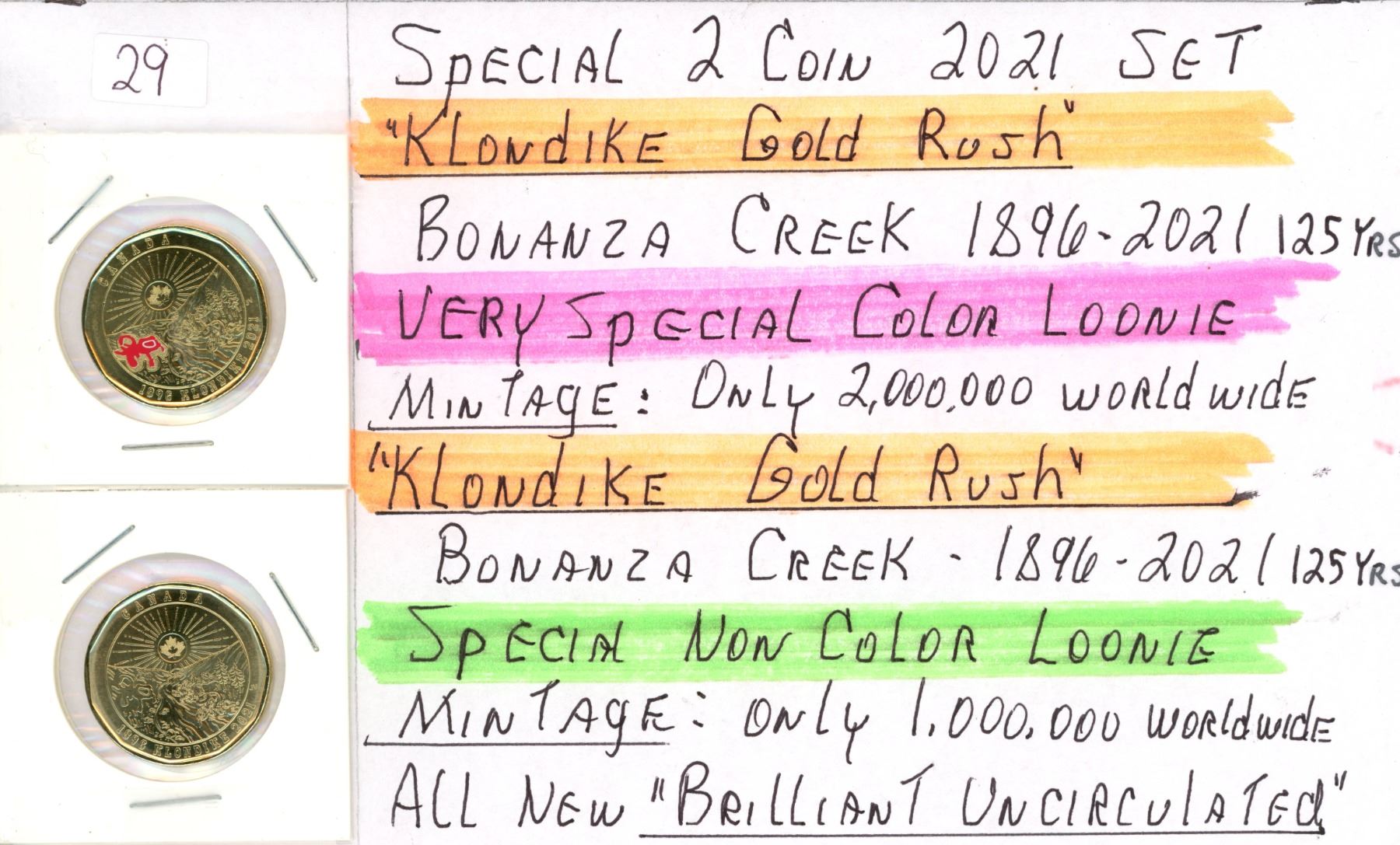 Two 2021 Loonies - 1896-2021 Klondike Gold Rush 125 Year Anniversary, Colour & Non-Colour