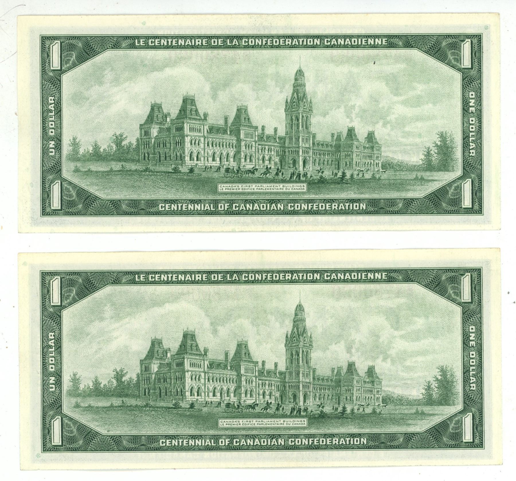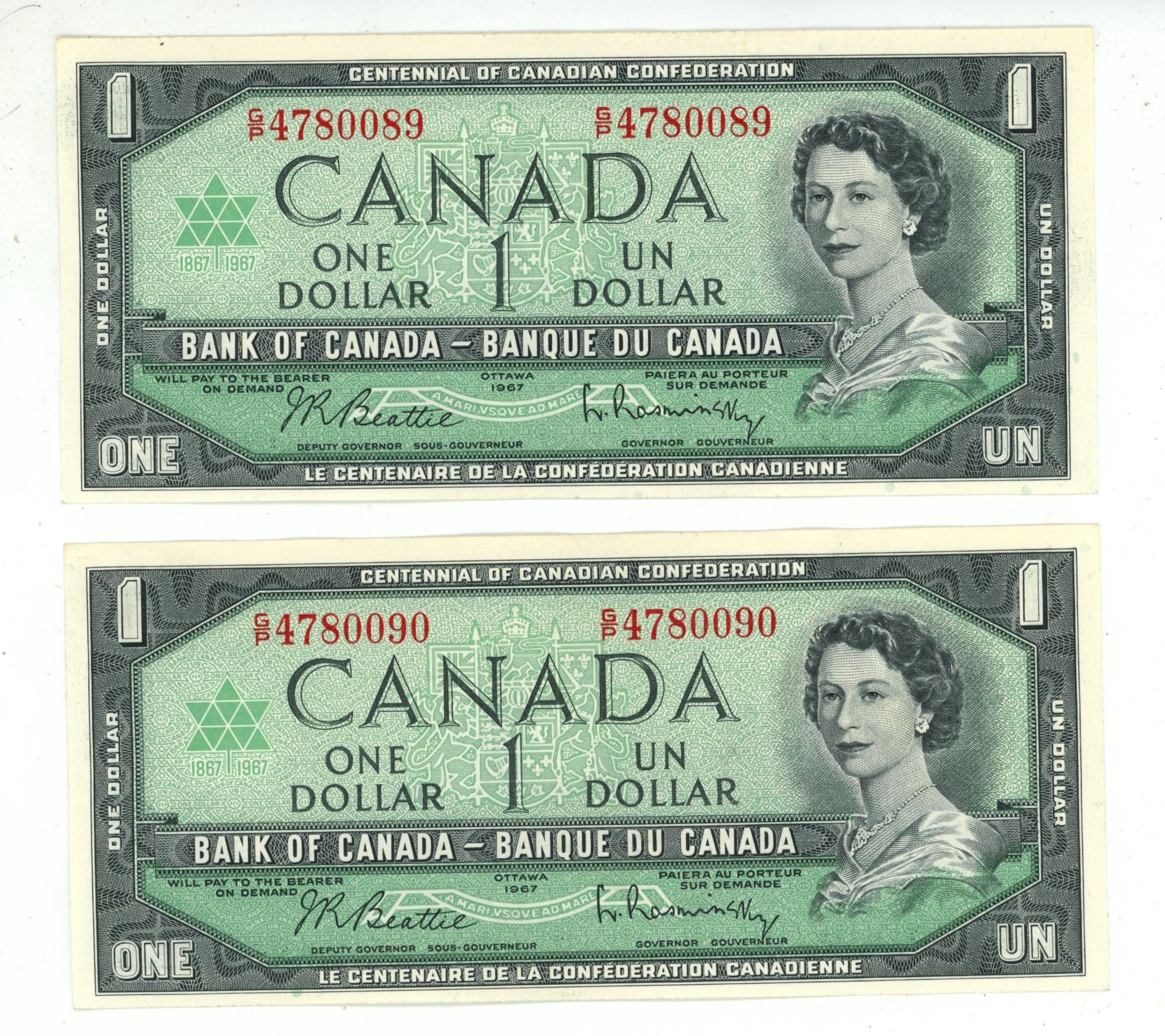 Two Consecutive 1967 Canada $1, Beattie/Rasminsky (#GP 4780089-090)