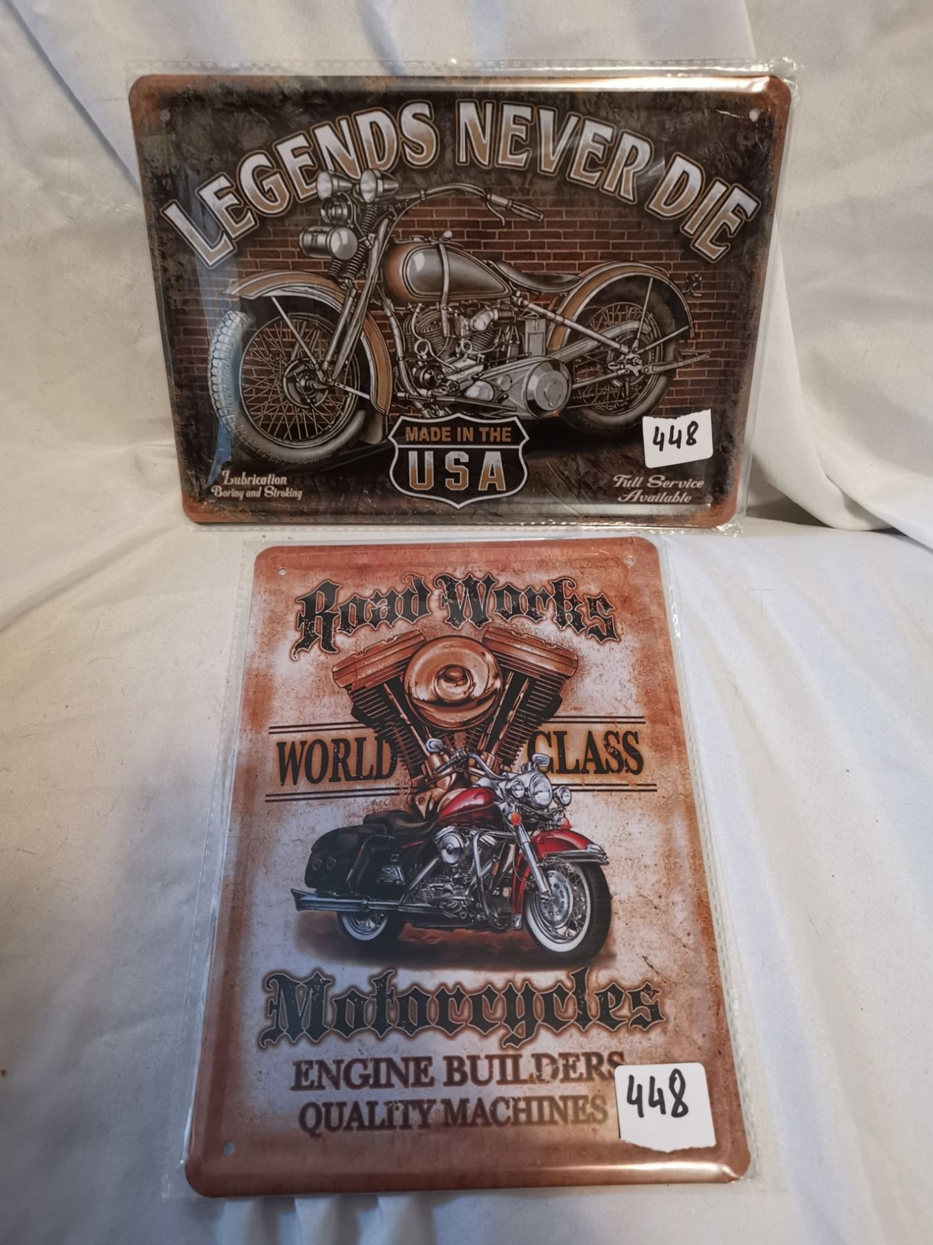 Two Motorcycle Tin Signs 12"x8"