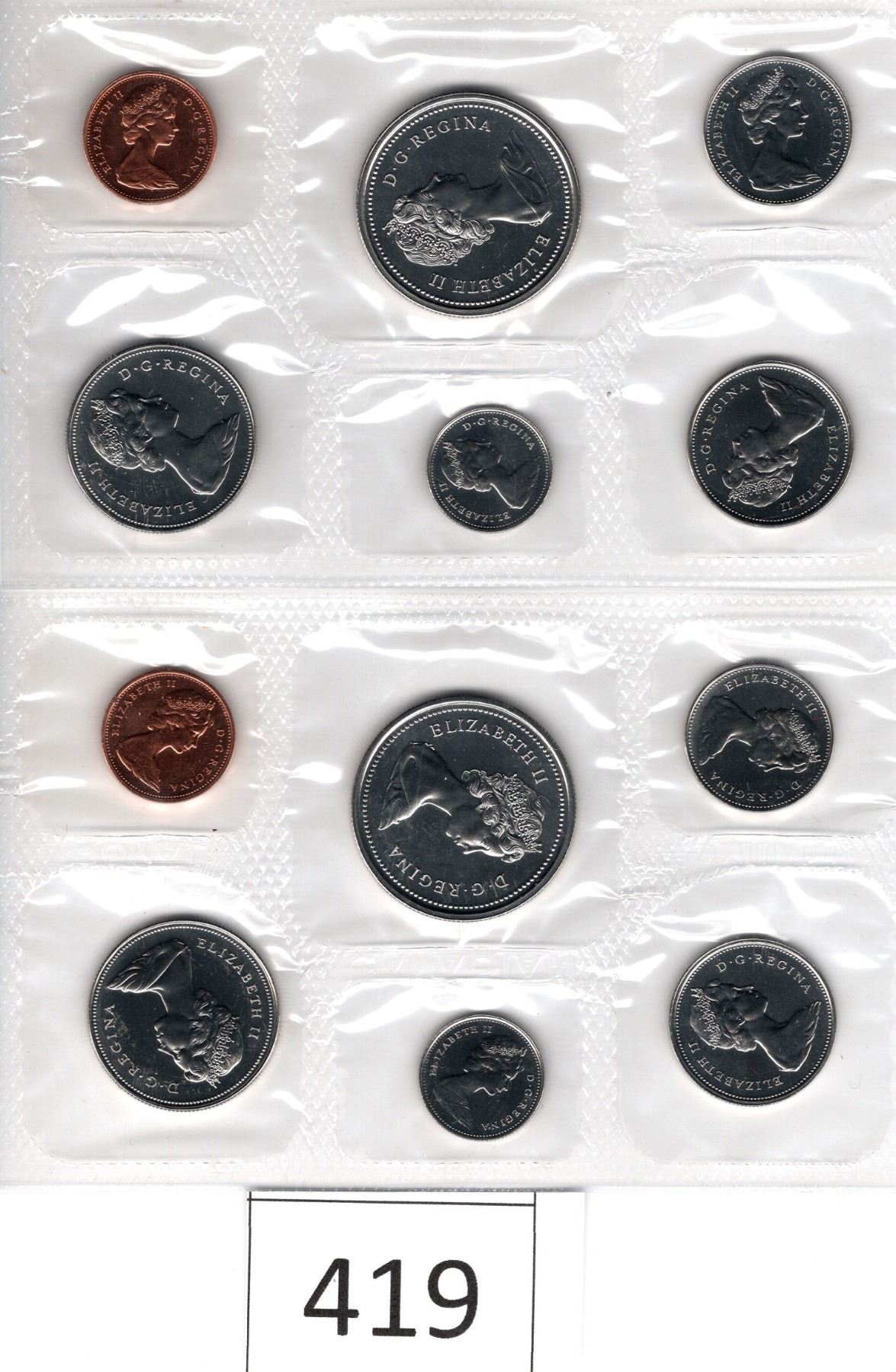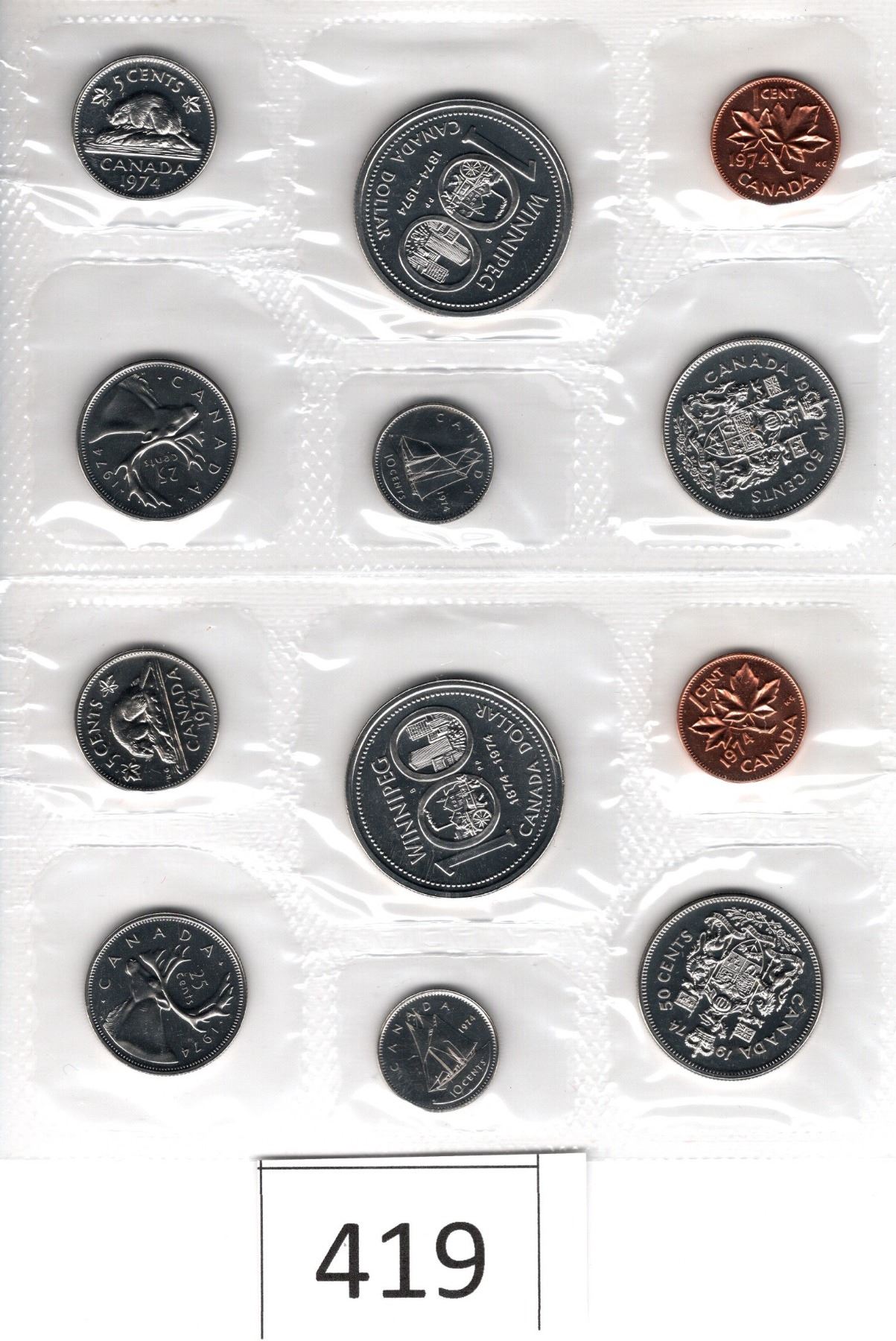 Two Sets 1974 Six Coins Silver Dollar, Fifty Cent Piece, Quarter, Dime, Nickel, Penny