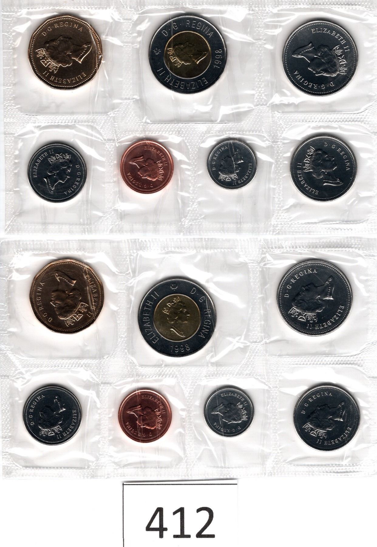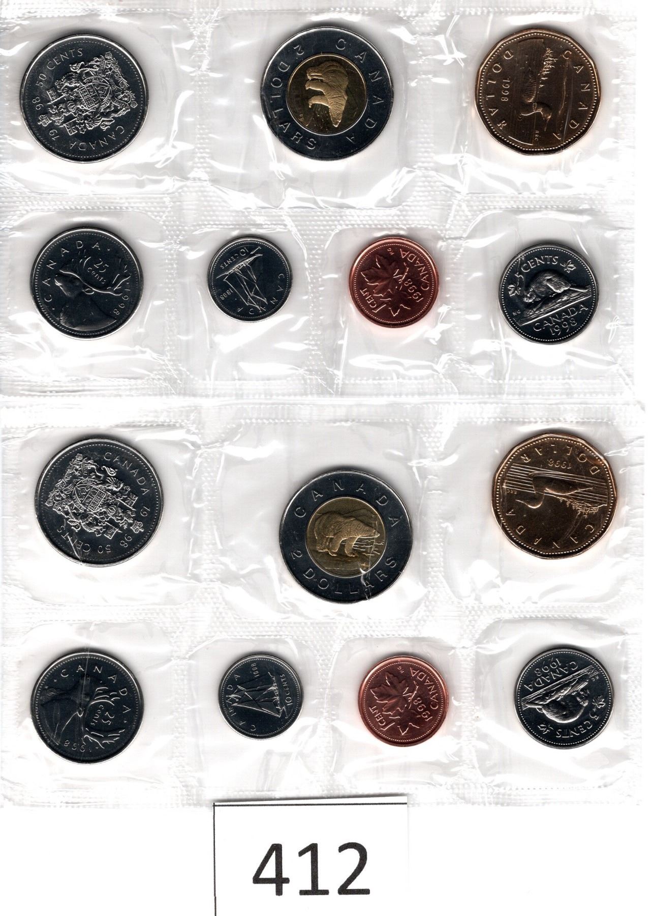 Two Sets 1998 Seven Coins Toonie, Loonie, Fifty Cent Piece, Quarter, Dime, Nickel, Penny