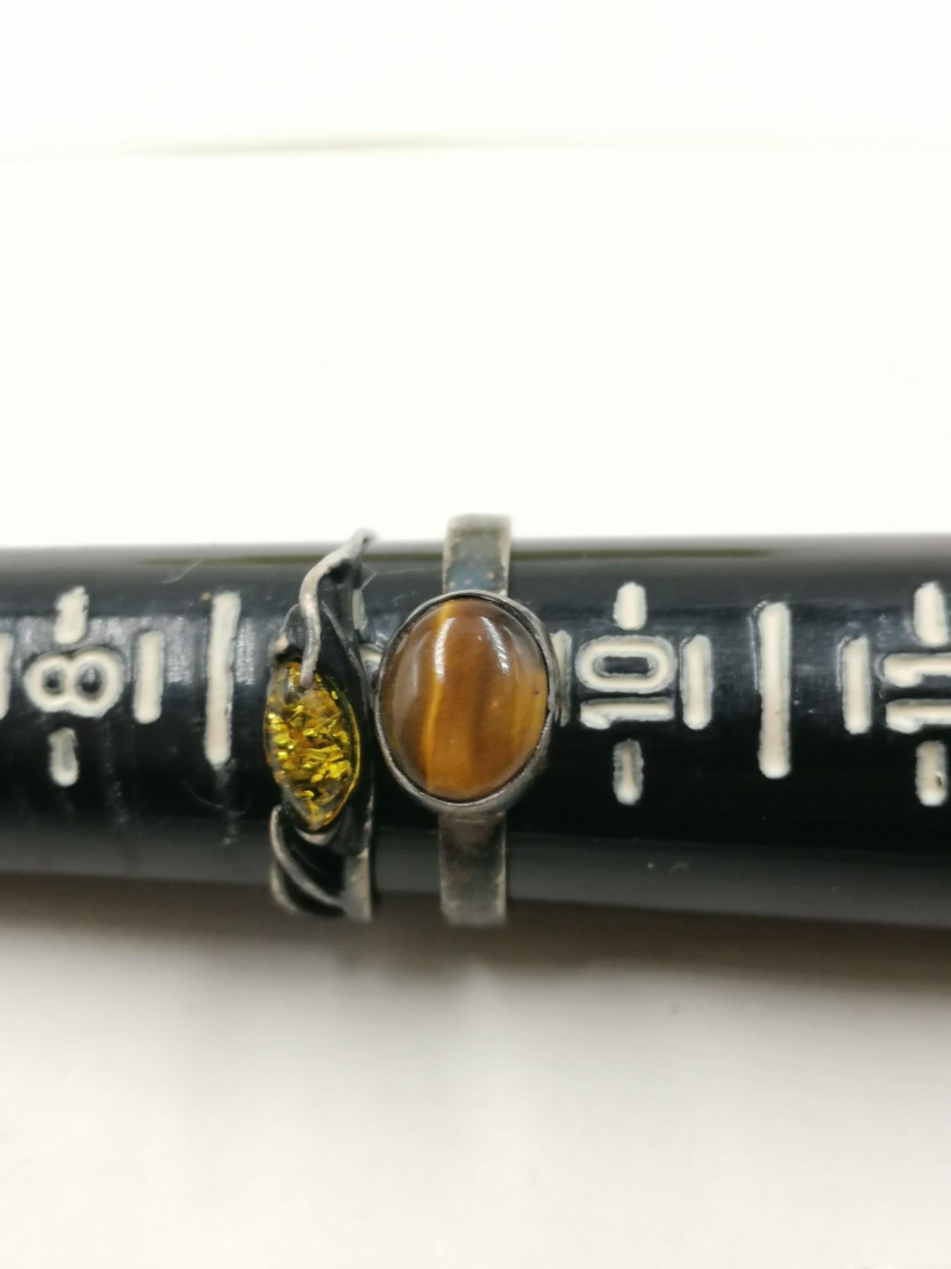 Two antique sterling rings, amber