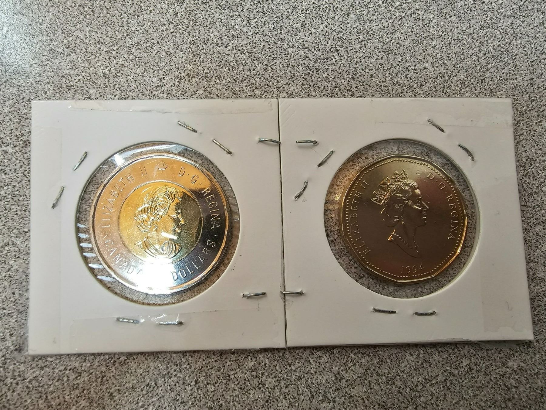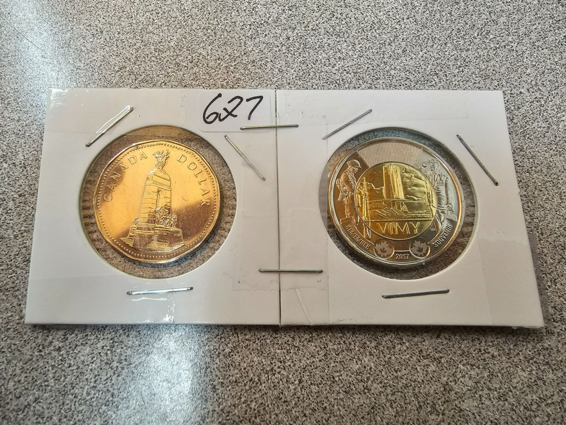 Two collectible Canadian $1.00 loonies - 2007 Vimy Ridge, 1994 Canada National War Memorial