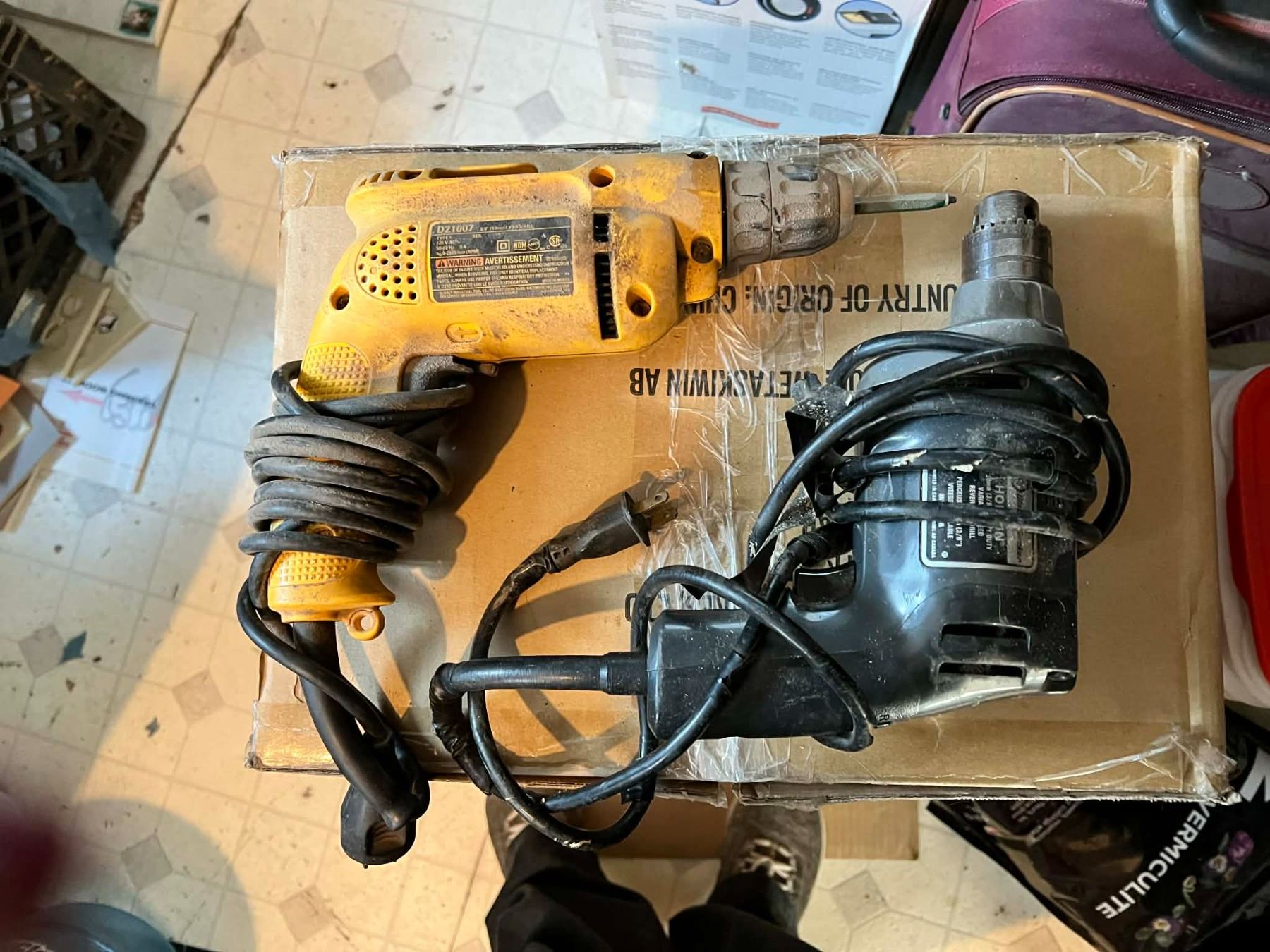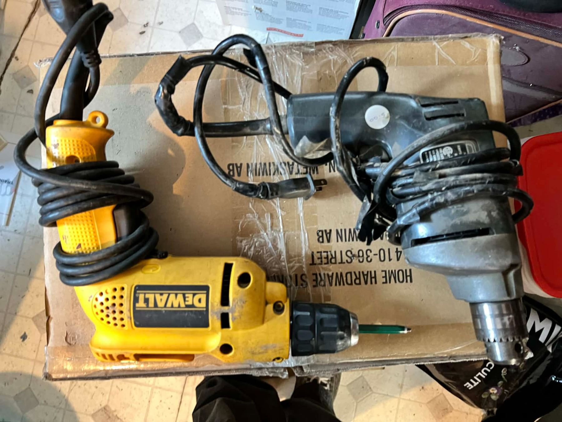 Two electric drills, one DeWalt corded drill 3/8 inch pistol grip,