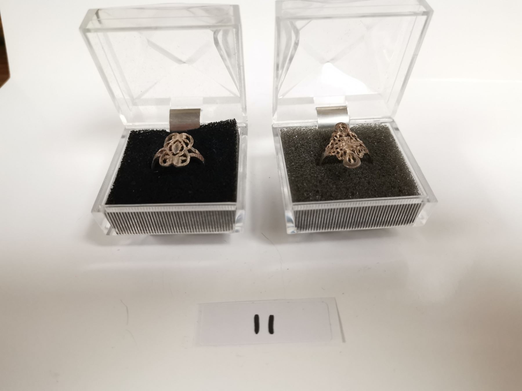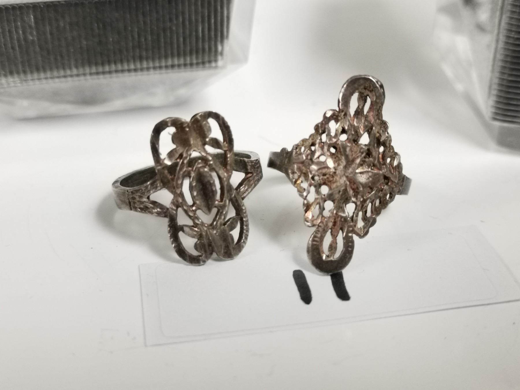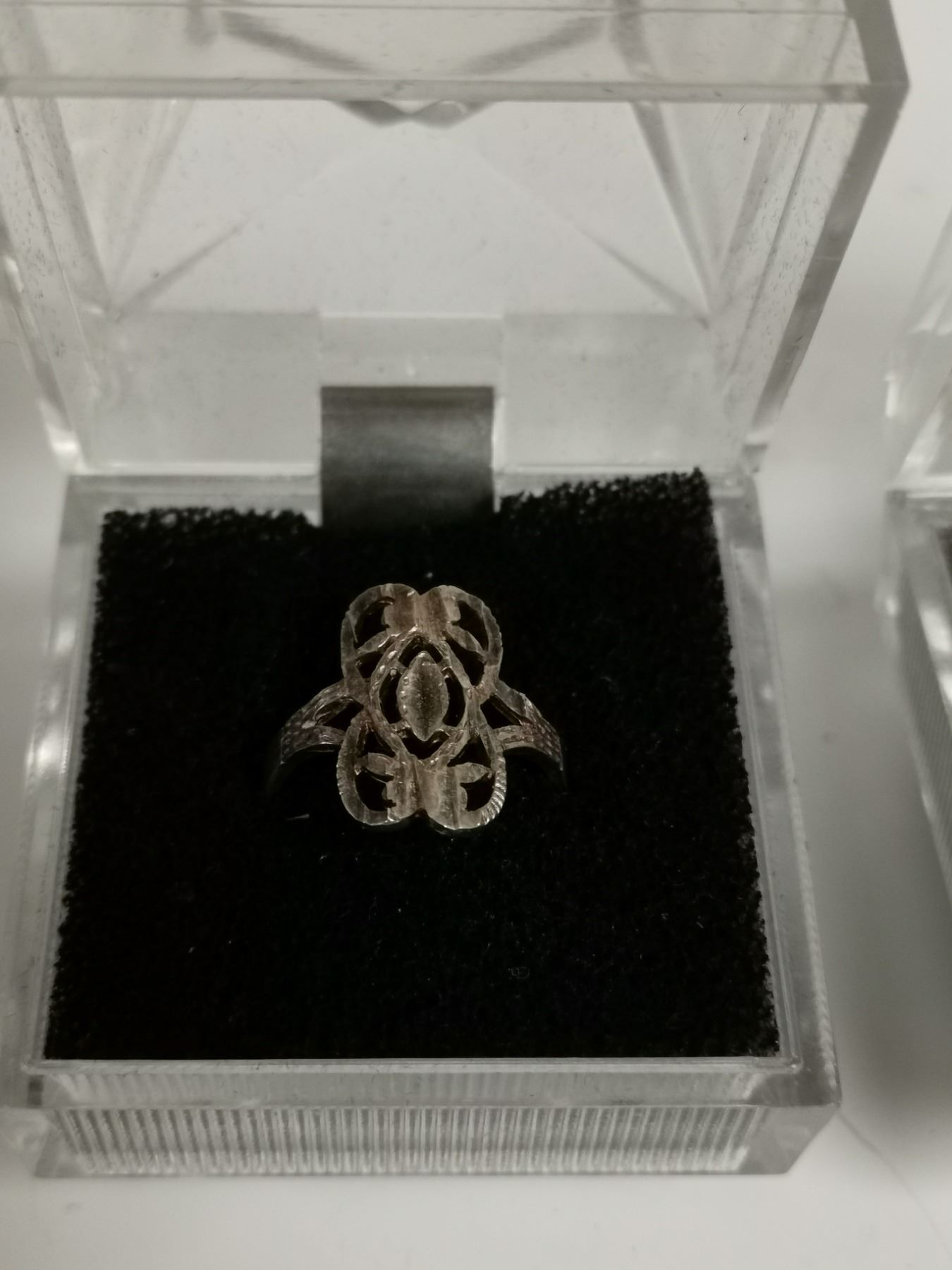 Two vintage sterling silver rings in boxes