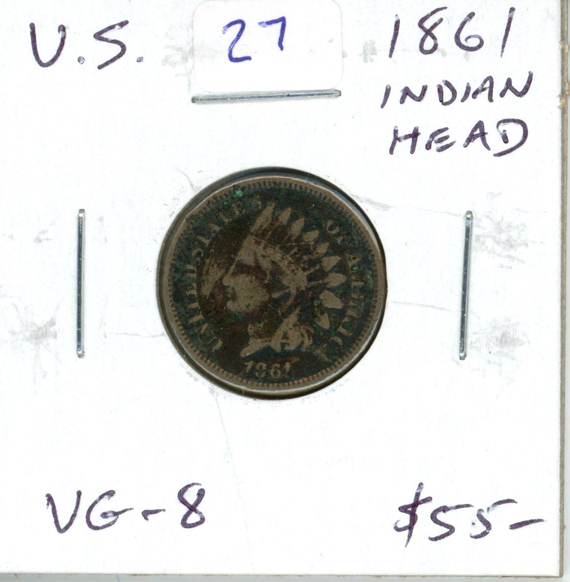 U.S. 1861 Indian Head Cent. VG-8. Scarce.