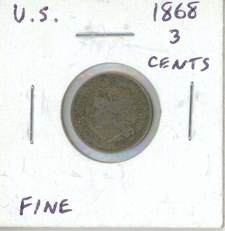 U.S 1868 3 cent silver coin