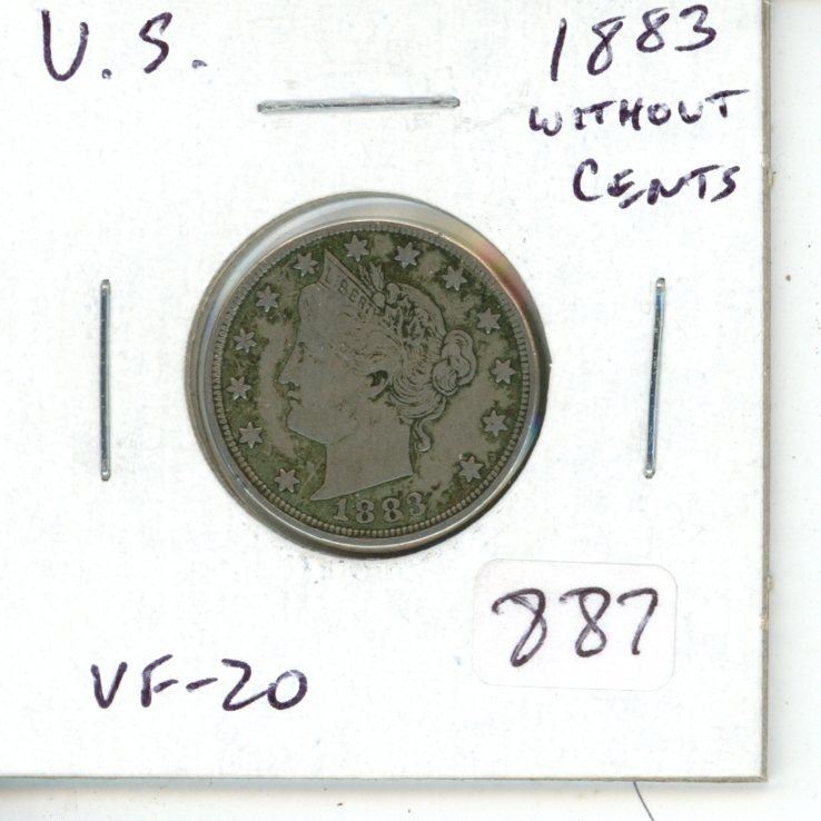 U.S. 1883 5 Cents (without CENTS variety). VF-20.