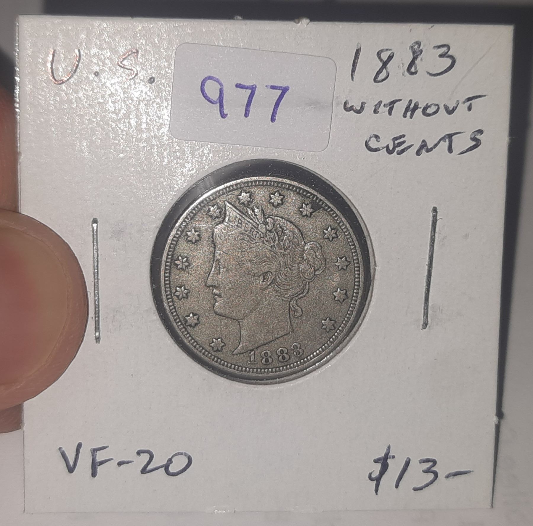 U.S. 1883 Liberty Head 5 Cents Without CENTS. VF-20. The first Liberty Head issued.
