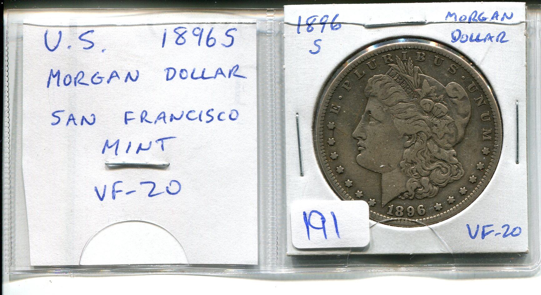 U.S. 1896S Morgan Silver Dollar. San Francisco Mint. VF-20.