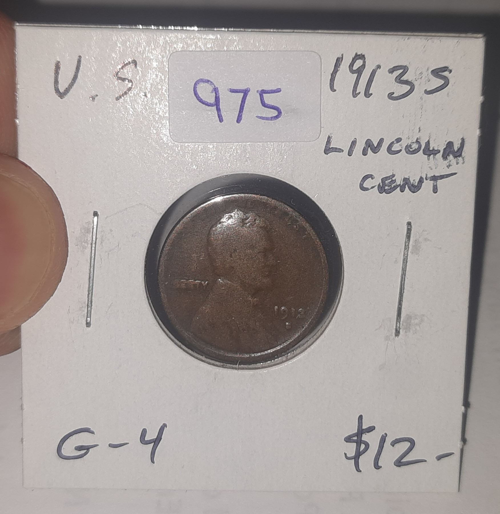 U.S. 1913S Lincoln Cent. Early Lincoln. San Francisco Mint. G-4.