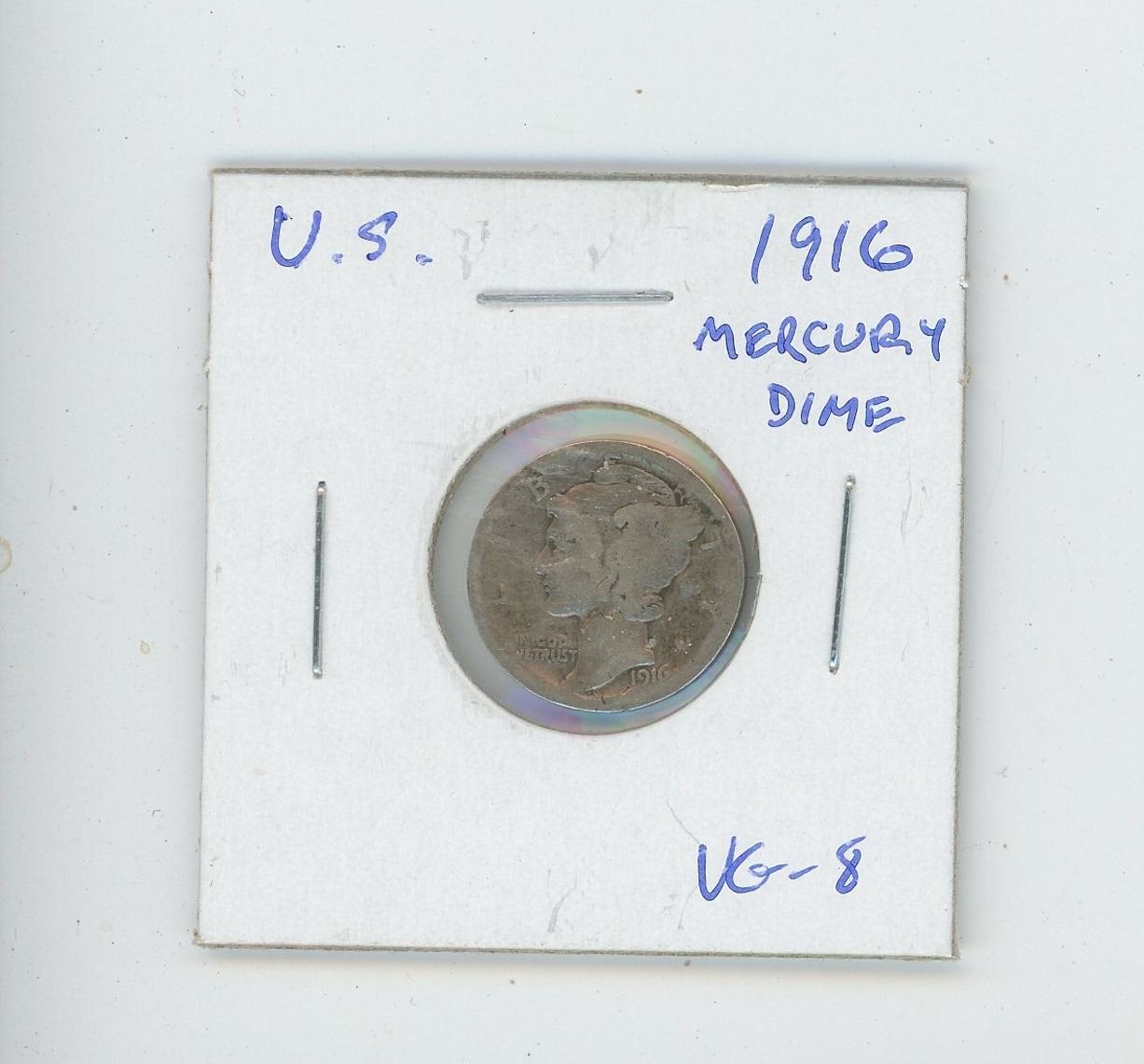 U.S. 1916 Mercury Dime VG-8. The first Mercury Dime.