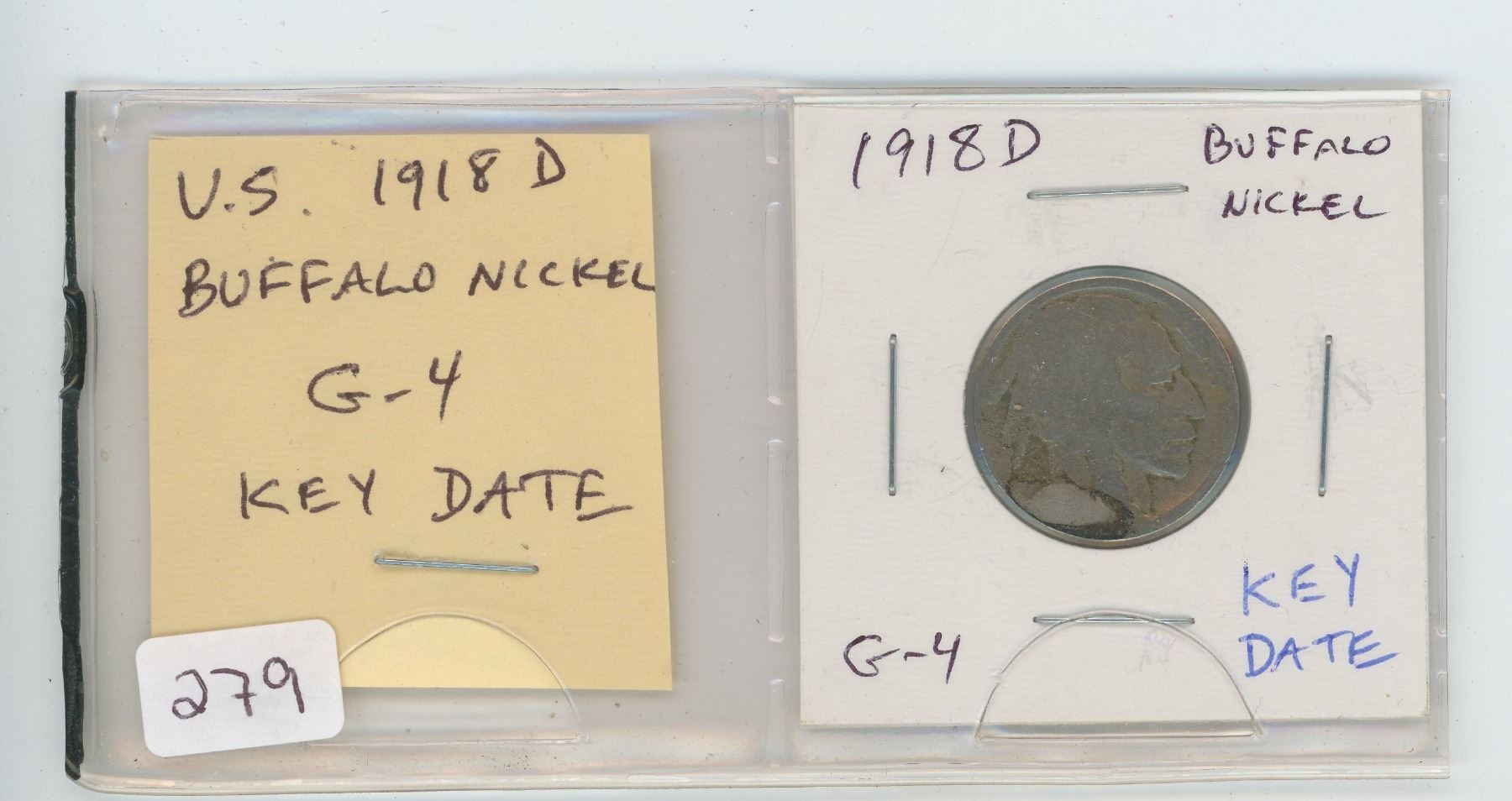 U.S. 1918D BUFFALO NICKEL. G-4. KEY DATE.