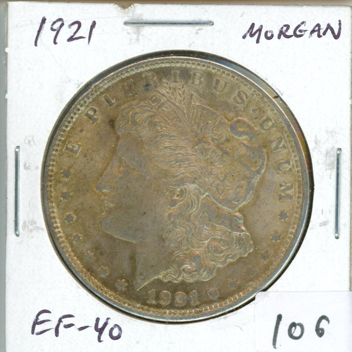 U.S. 1921 Morgan Silver Dollar. Philadelphia Mint. EF-40.
