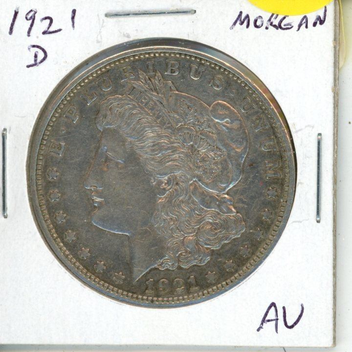 U.S. 1921D Morgan Silver Dollar. Denver Mint. 100 Years Old. AU-50.