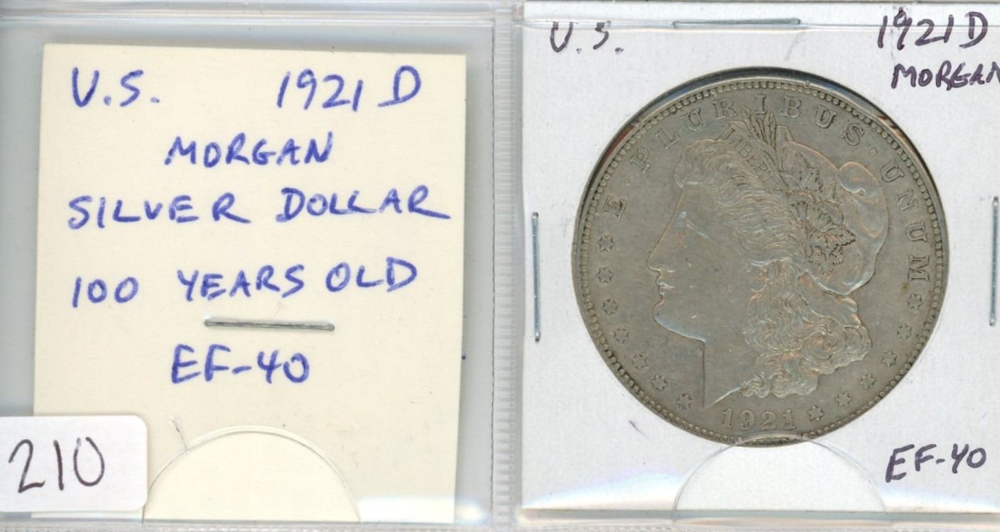 U.S. 1921D Morgan Silver Dollar. Denver Mint. 100 years old. EF-40. Nice.