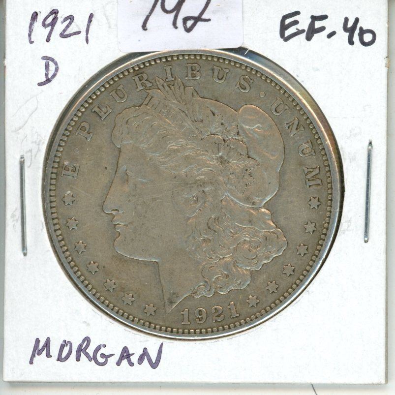 U.S. 1921D Morgan Silver Dollar. Denver Mint. EF-40.