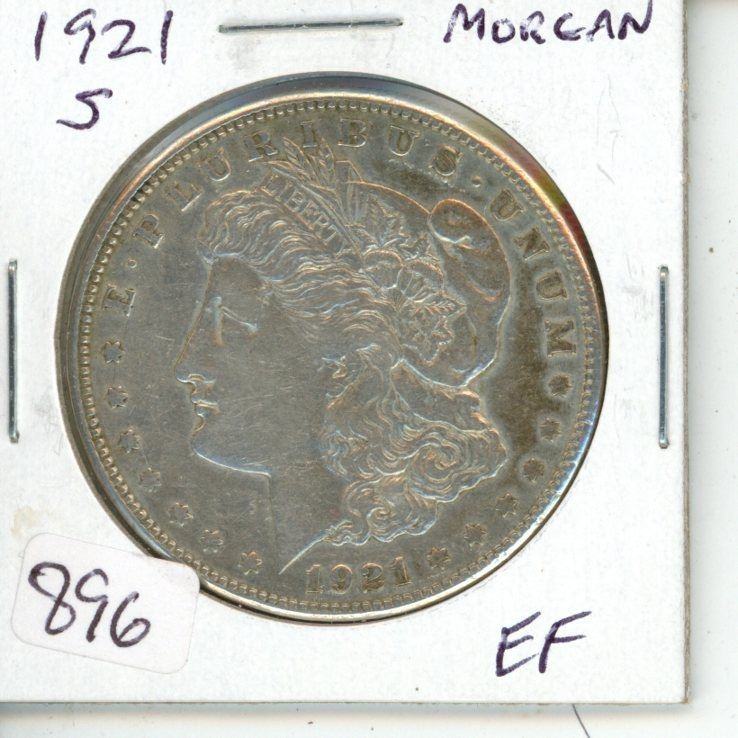 U.S 1921S Morgan Silver Dollar. San Francisco Mint. Coin is 100 Years Old. EF.40.