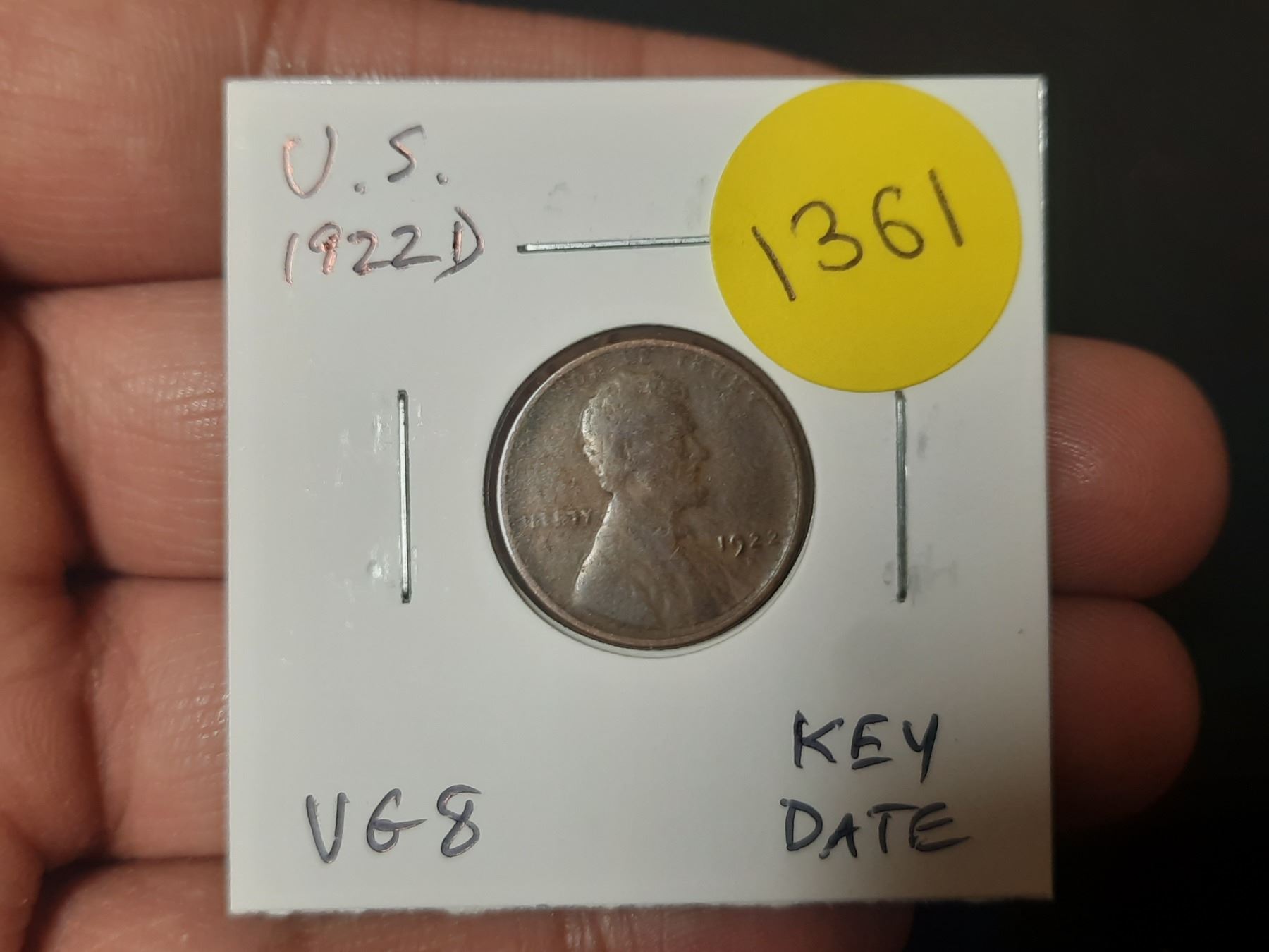 U.S. 1922D Lincoln Cent. Key Date. VG8.