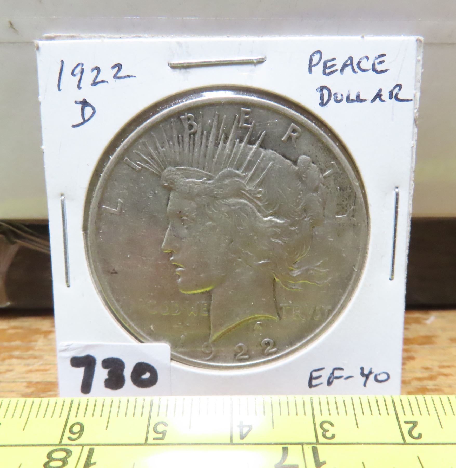 U.S. 1922D Silver Peace Dollar. Denver Mint. EF-40.