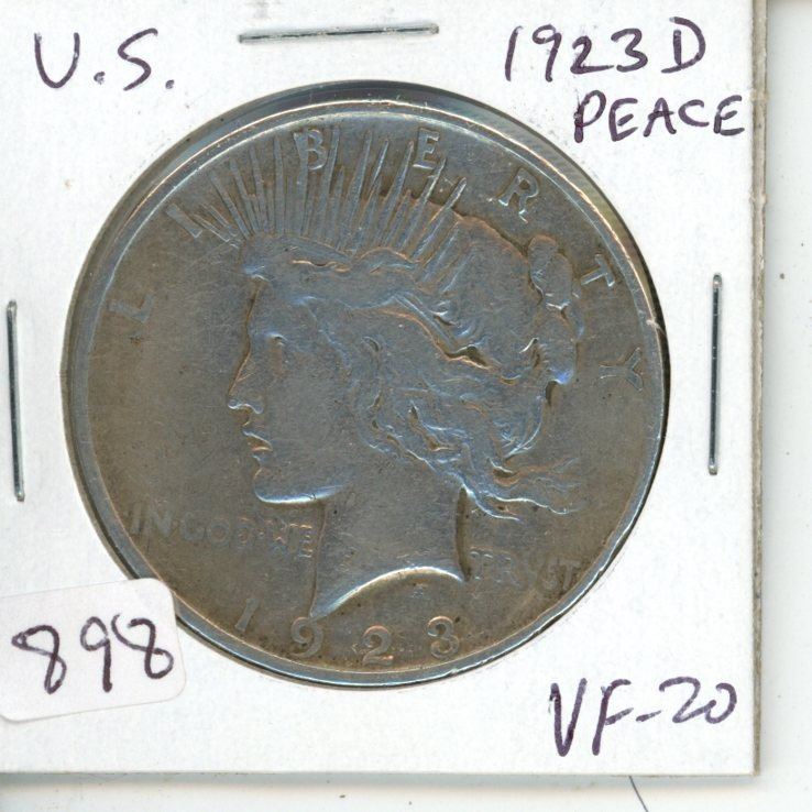 U.S. 1923D Peace Silver Dollar. Denver Mint. VF-20.