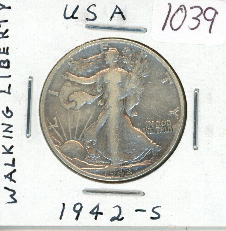 U.S. 1942S Walking Liberty Silver Half Dollar. San Francisco Mint. F-12.