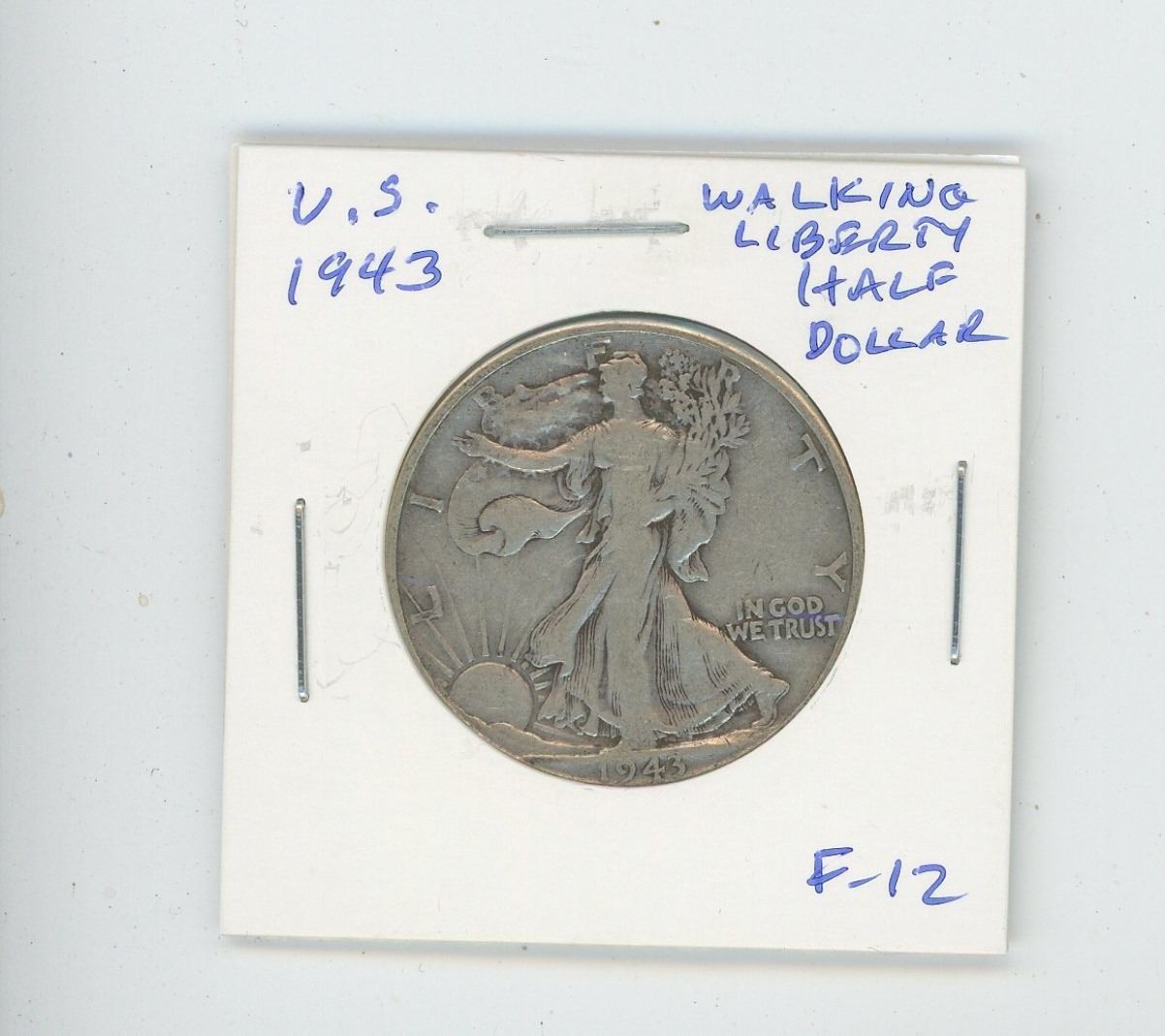 U.S. 1943 Walking Liberty Half Dollar. F-12. Issued after the U.S. joined World War II.