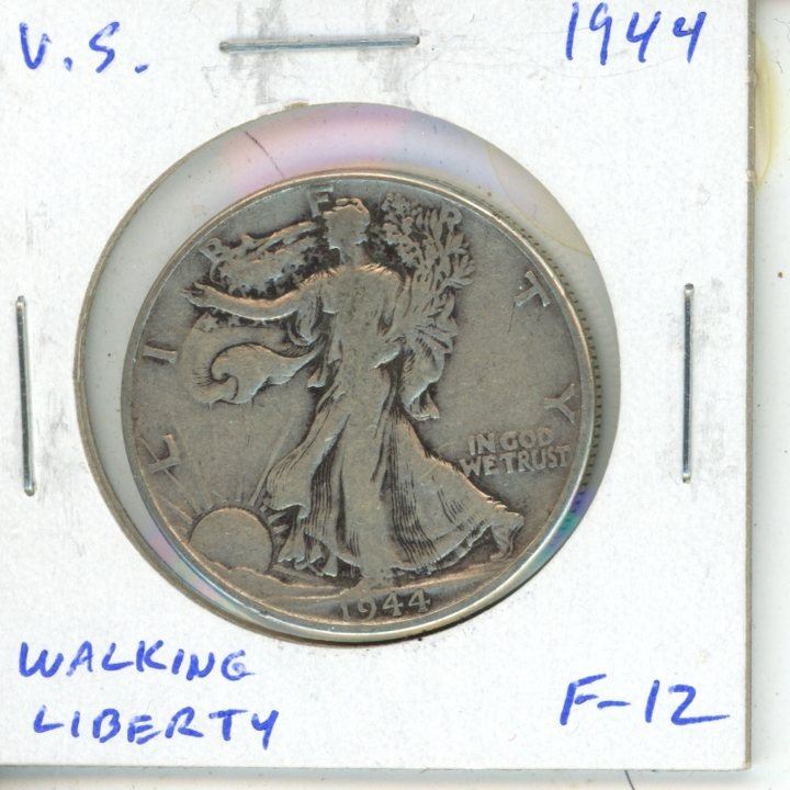 U.S. 1944 Walking Liberty Silver Half Dollar. World War II issue. F-12.