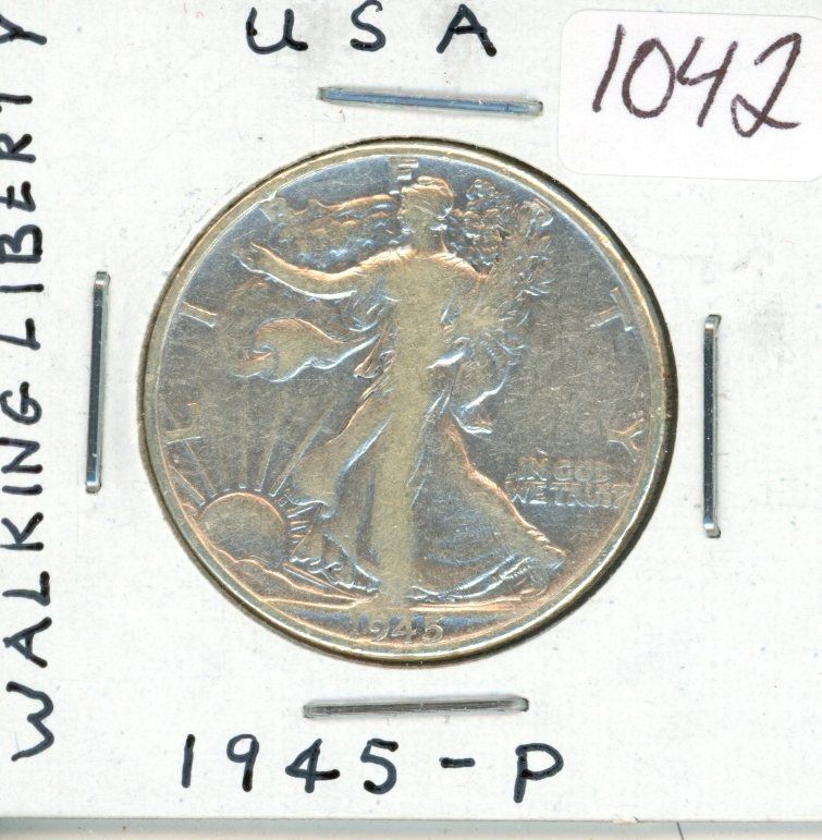 U.S. 1945 Walking Liberty Silver Half Dollar. F-12.