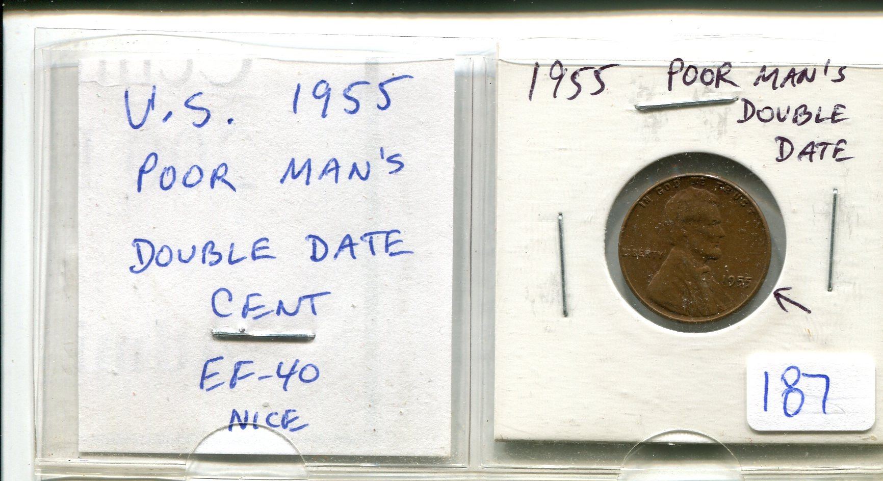 U.S. 1955 Poor Man’s Double Date Cent. Can’t afford a real one? This one has the final 5 doubled. EF-40. Nice.