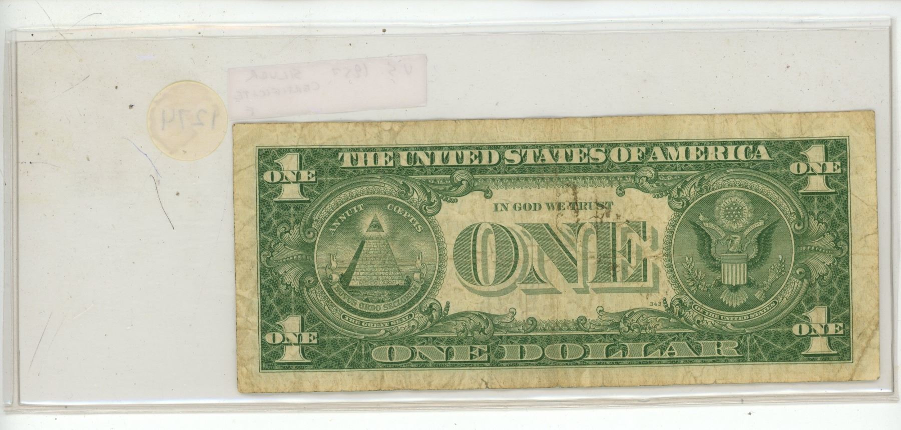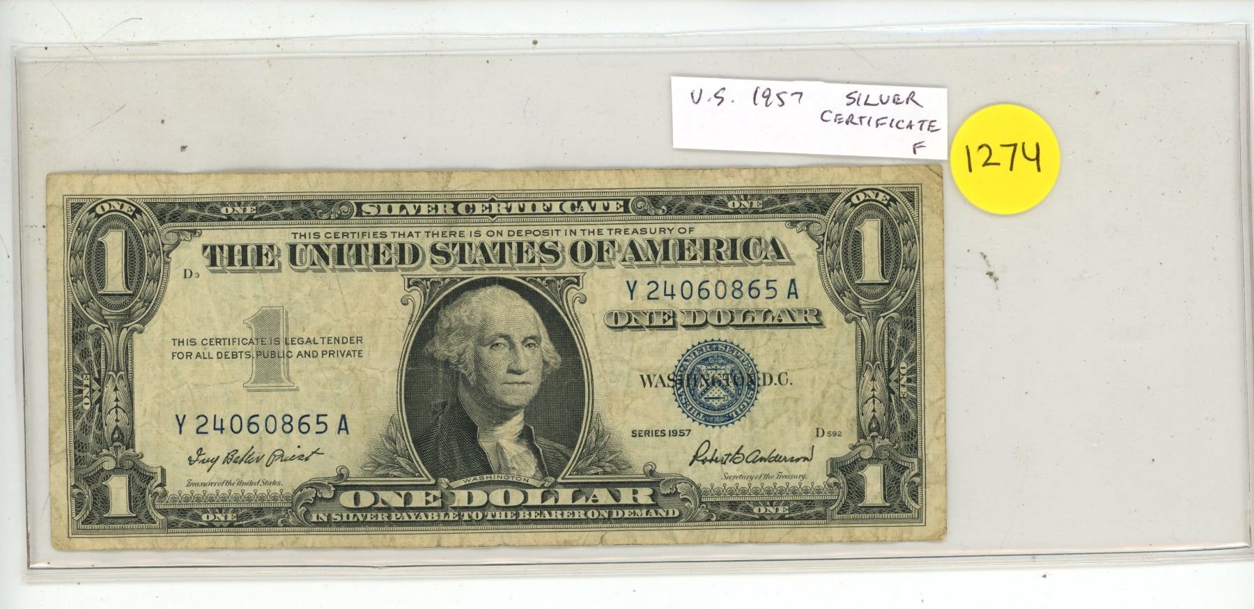 U.S. 1957 $1 Silver Certificate. At one time, you could take this note to any U.S. bank and demand a U.S. Silver Dollar in exchange. Fine.