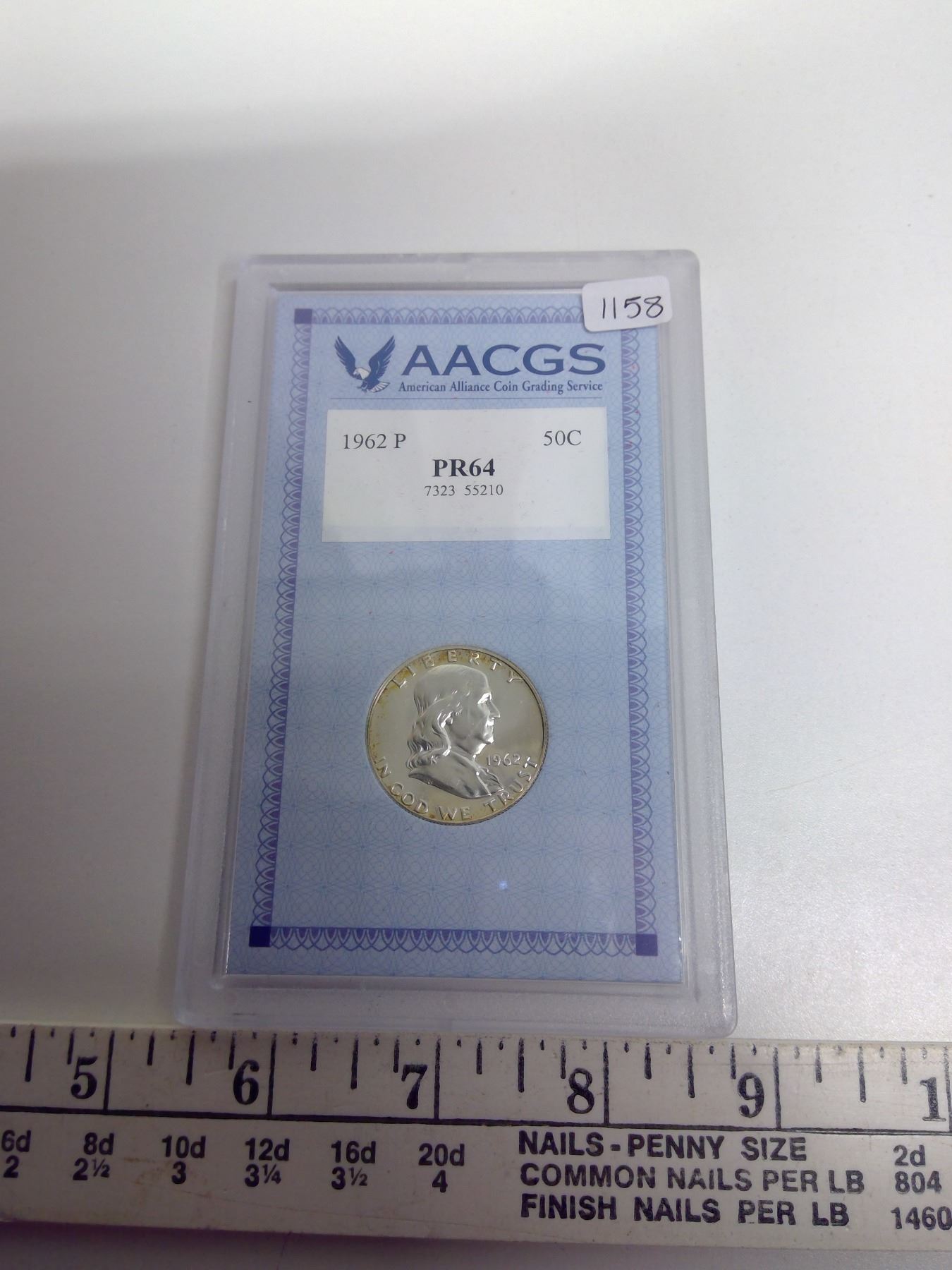 U.S. 1962 Ben Franklin Silver 50 Cents. Certified and graded Proof-64 by AACGS.