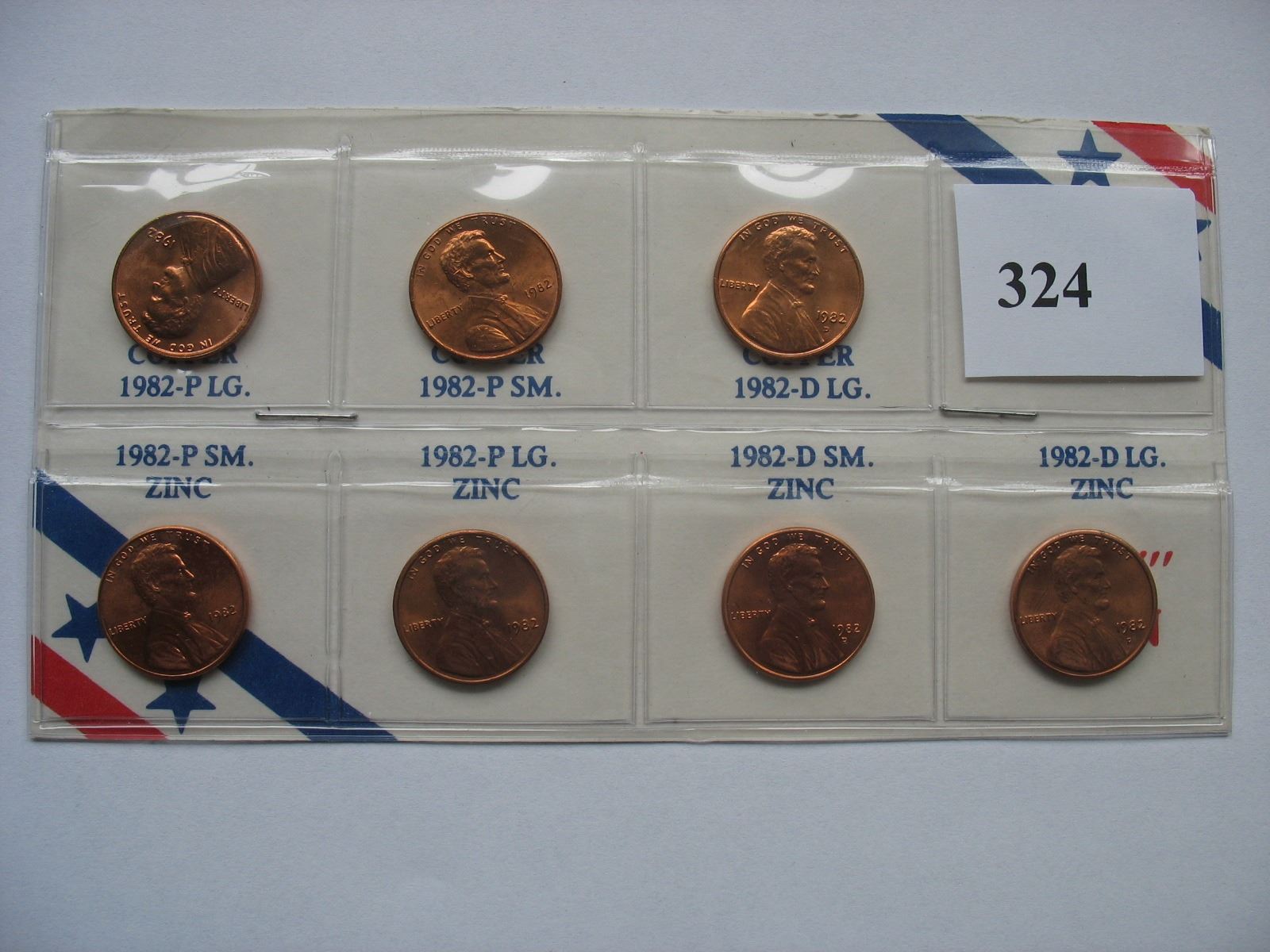 U.S. 1982 Lincoln Cent Set - 7 Different types