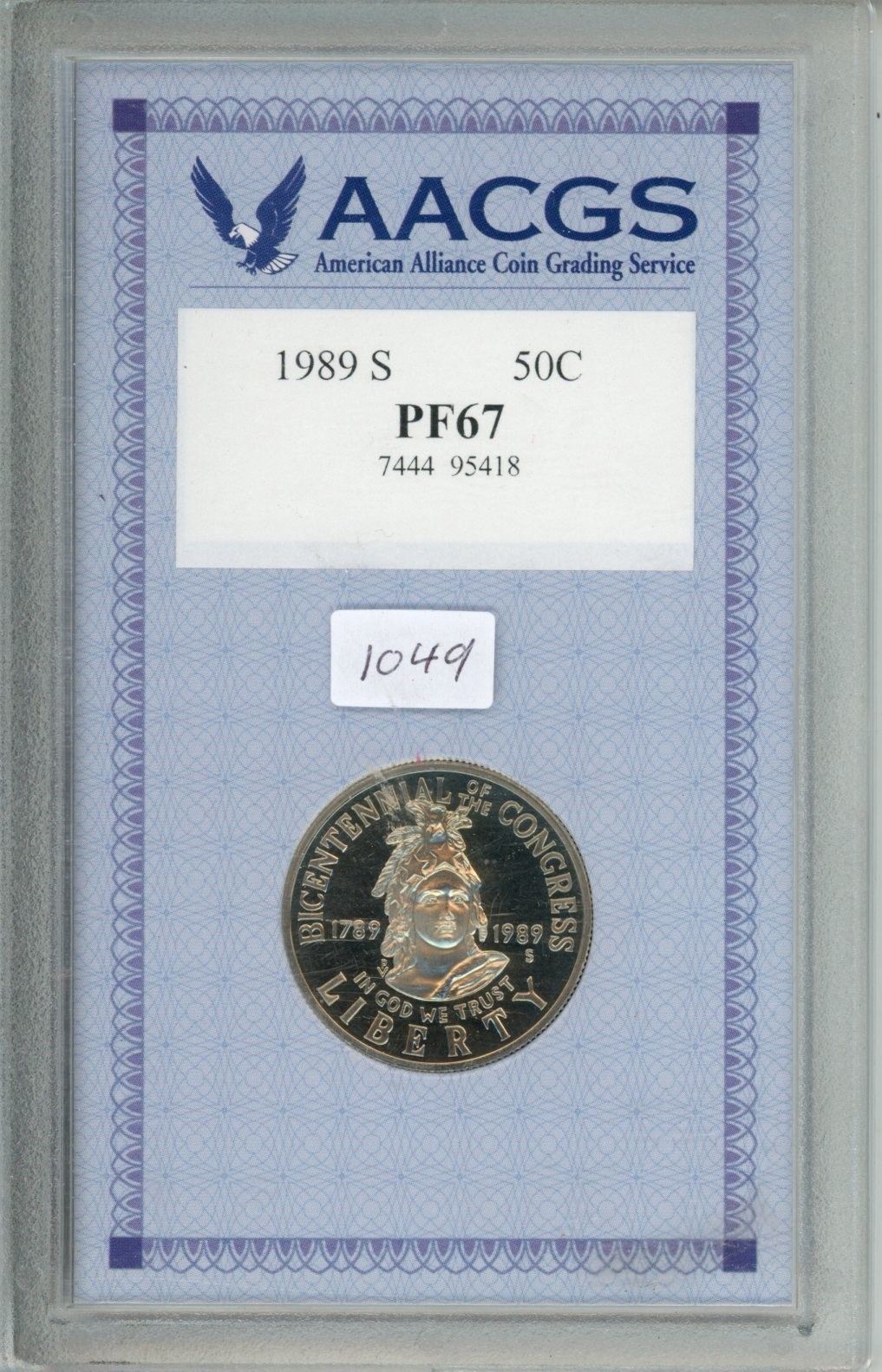U.S. 1989S Congress Bicentennial Commemorative Dollar. Graded Proof 67 by the American Alliance Coin Grading Service (AACGS).